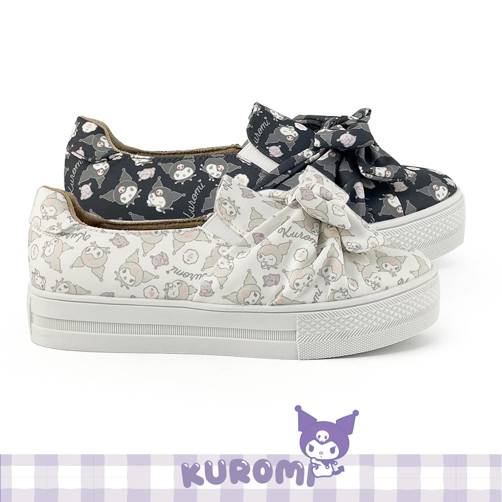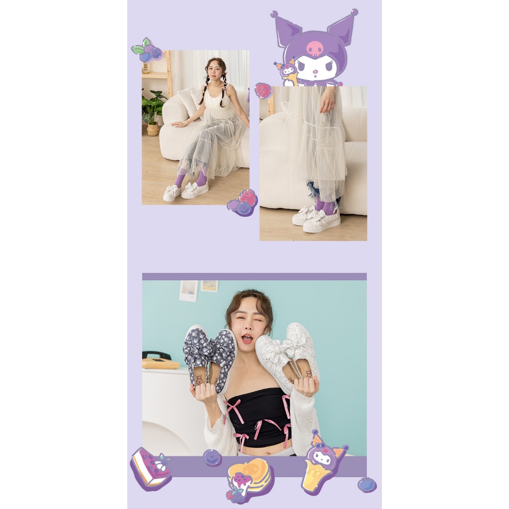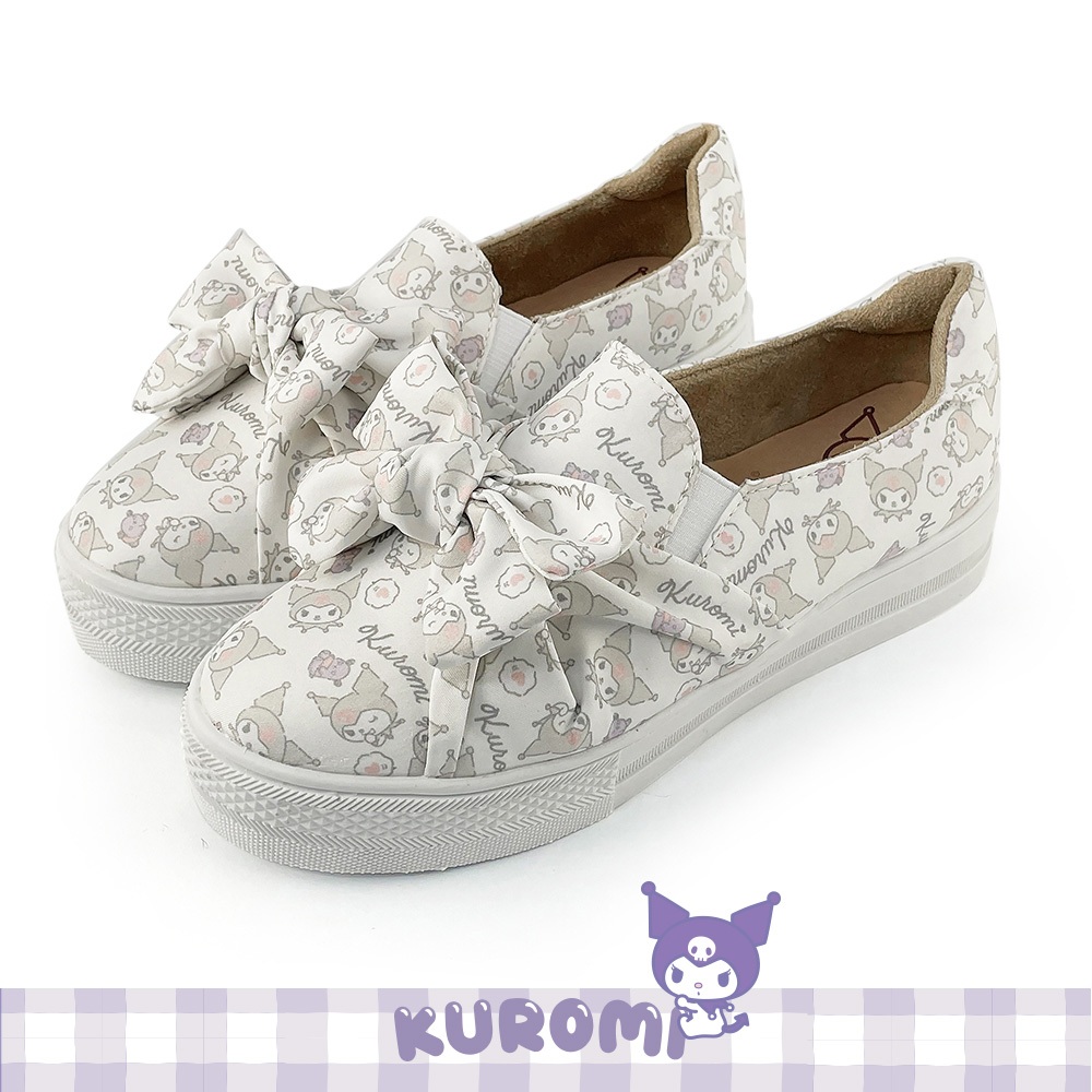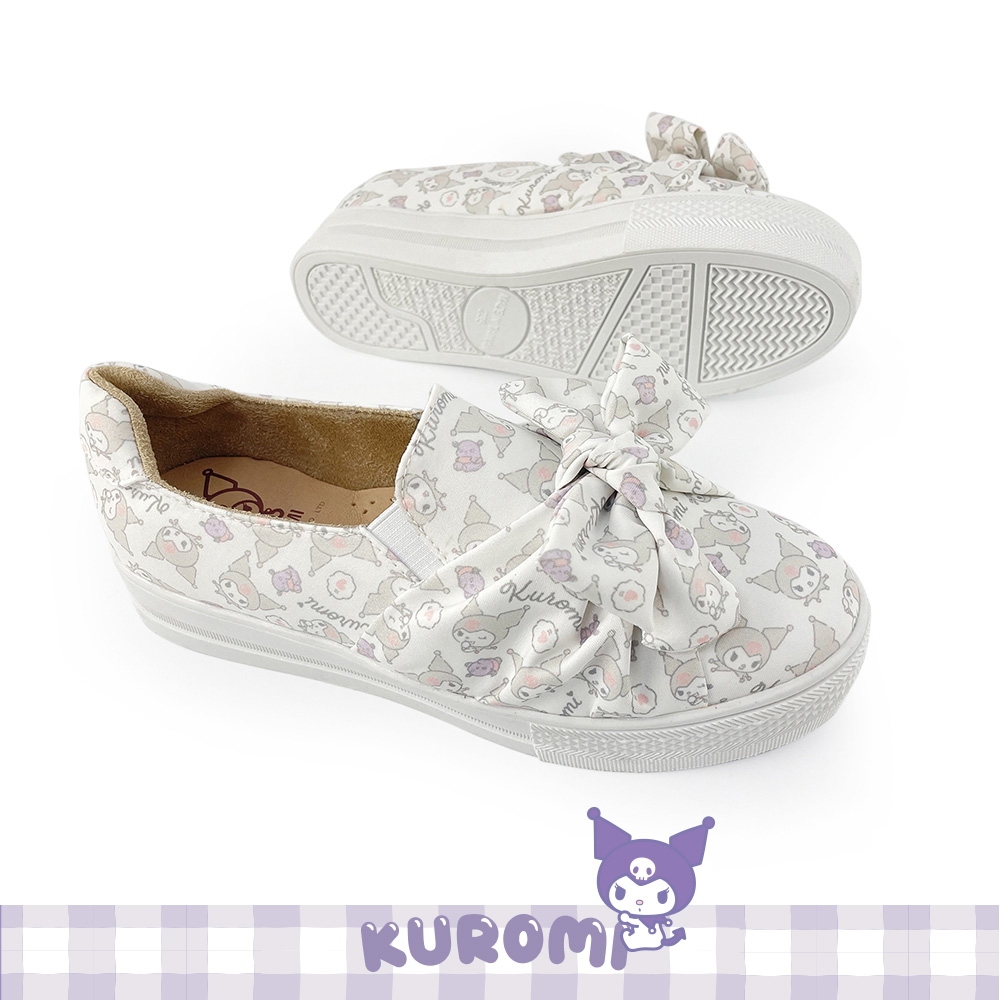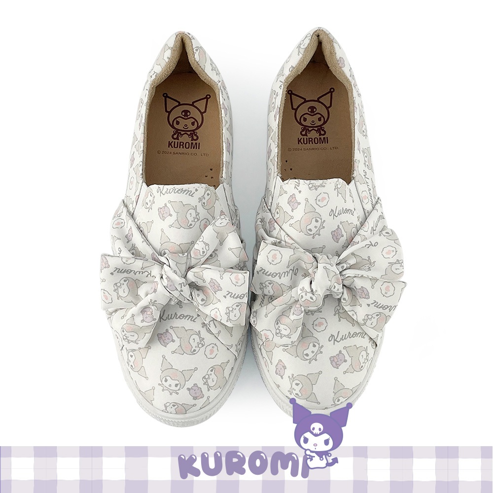 Paidal x Kuromi酷洛米 大蝴蝶厚底懶人鞋不彎腰鞋-小白鞋