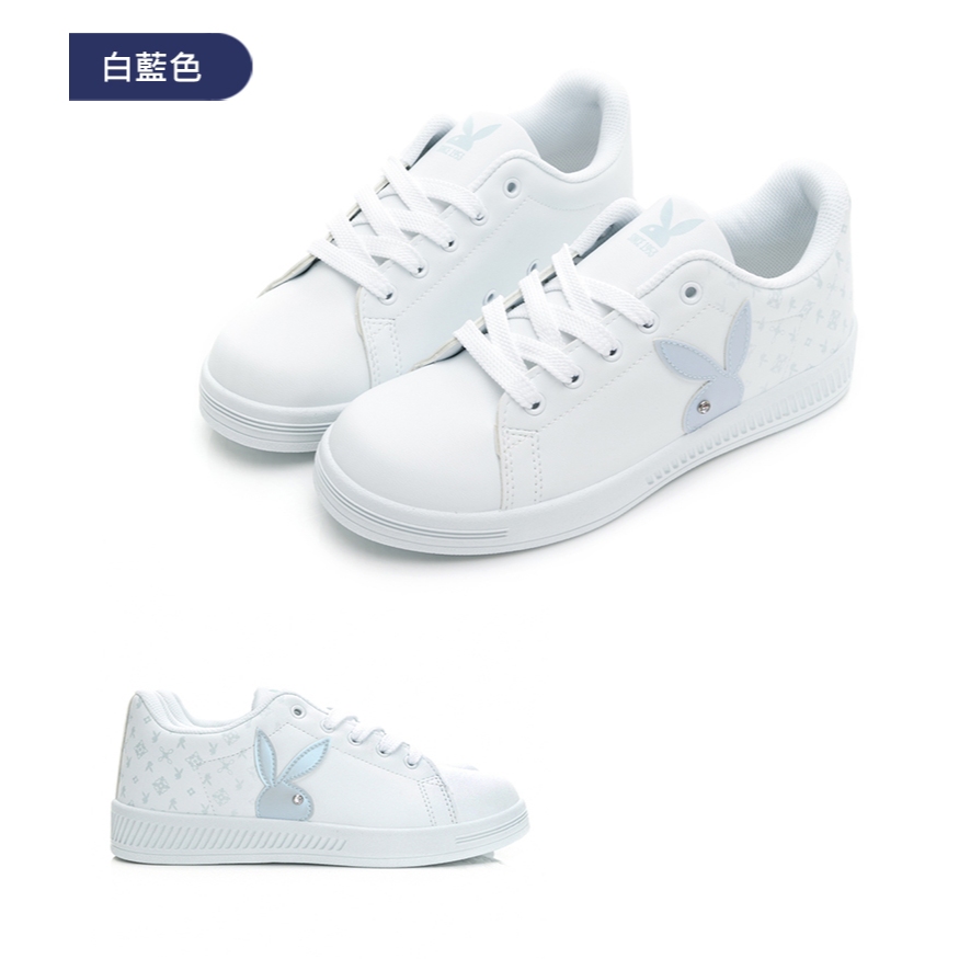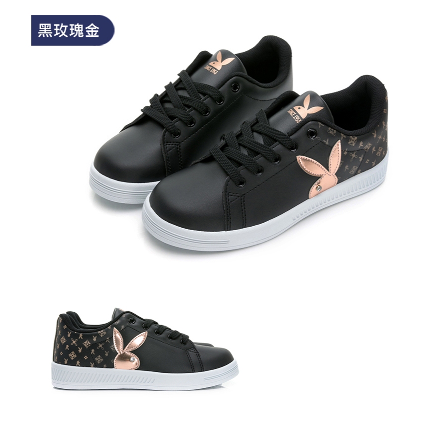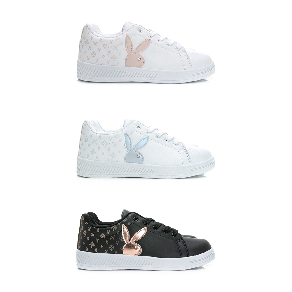 PLAYBOY timeless 都會時尚兔兔小白鞋-白粉/白藍/黑玫瑰金(PY0006)