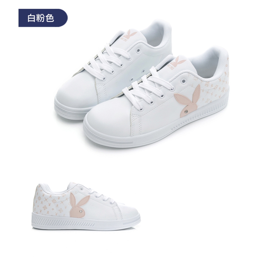 • PLAYBOY timeless 都會時尚兔兔小白鞋-白粉/白藍/黑玫瑰金(PY0006)