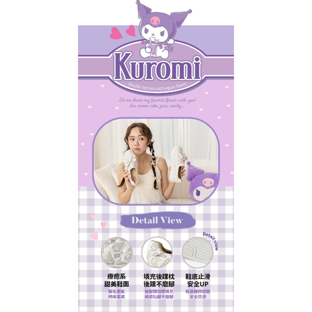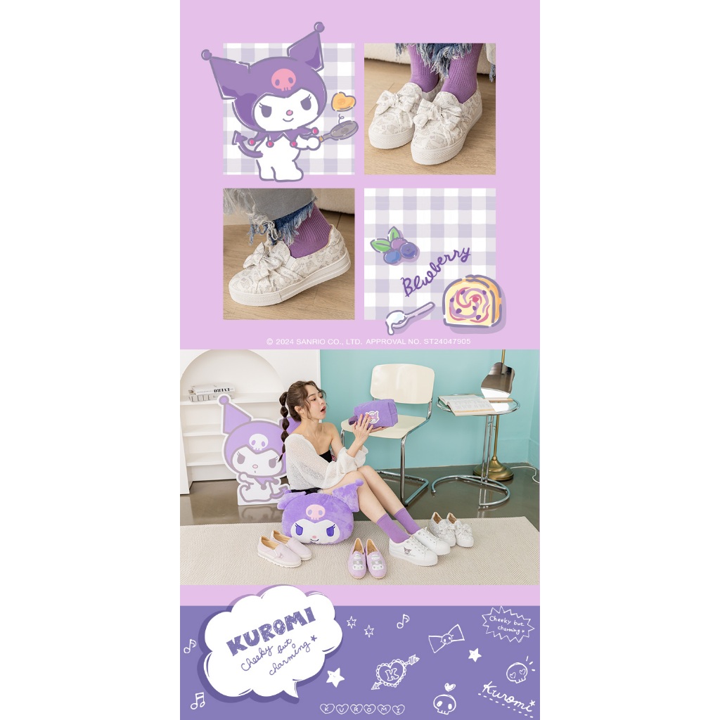 • Paidal x Kuromi酷洛米 大蝴蝶厚底懶人鞋不彎腰鞋-小白鞋