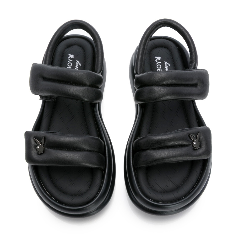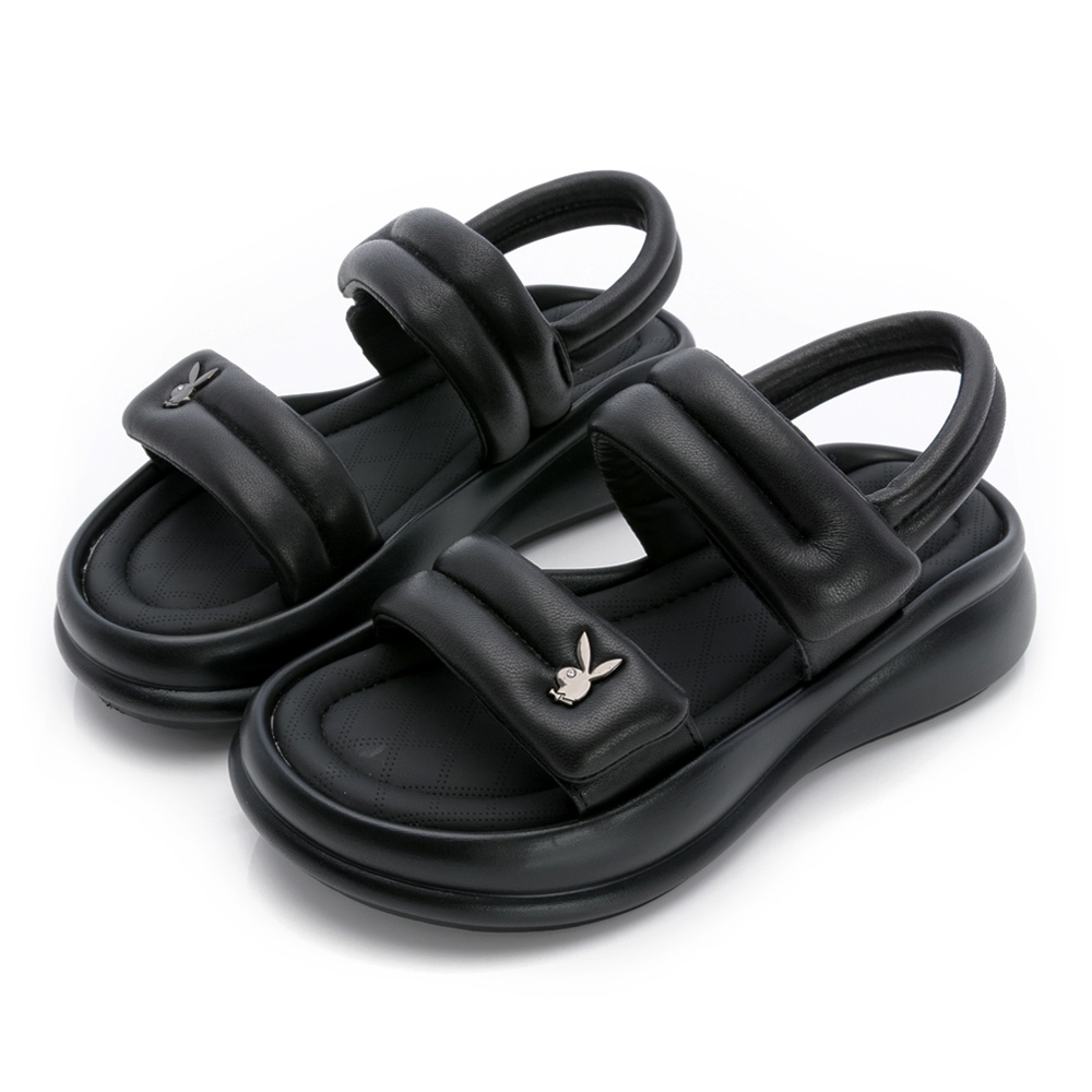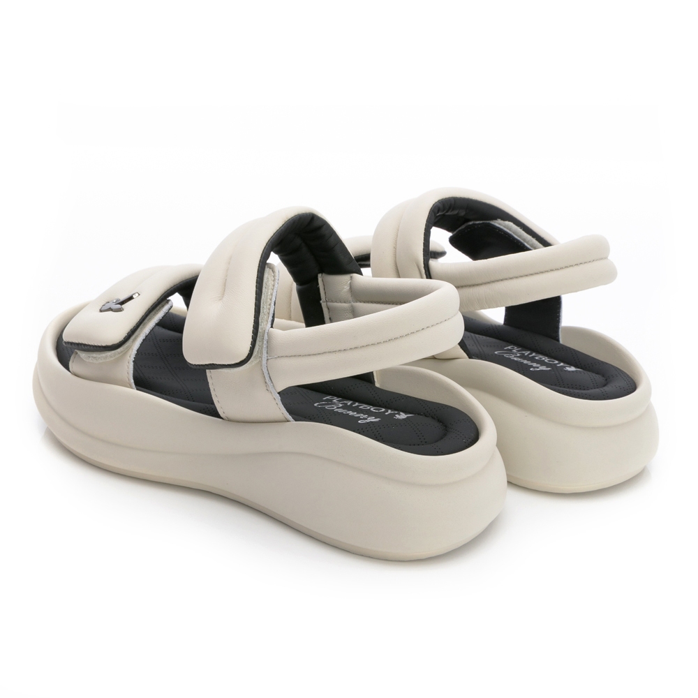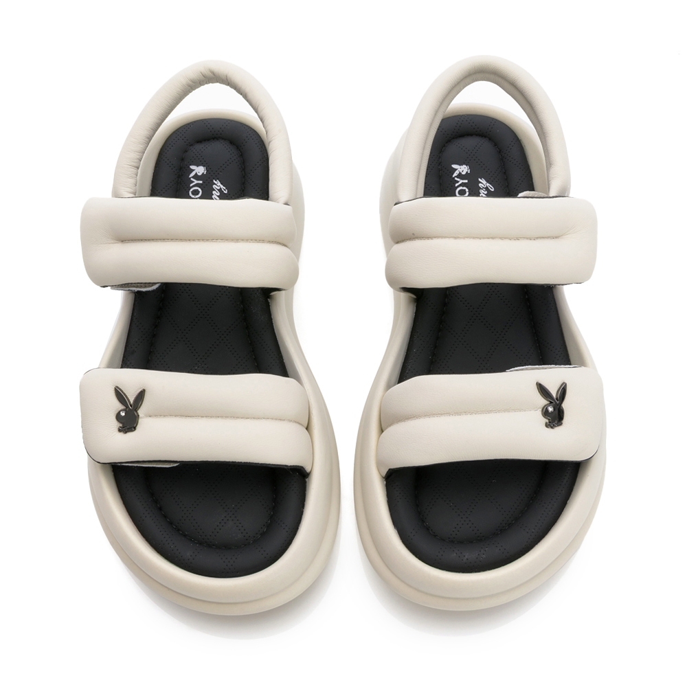 PLAYBOY 質感羊皮 彈力plus雲感涼鞋-米白/黑(PY1118)