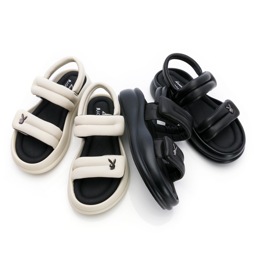 • PLAYBOY 質感羊皮 彈力plus雲感涼鞋-米白/黑(PY1118)
