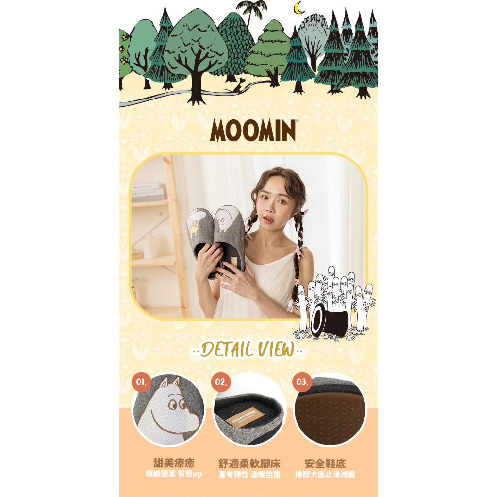 Paidal x Moomin姆明谷 姆明與歌妮毛絨室內拖鞋06|07|08|09Indoor SlippersPaidal官方旗艦店