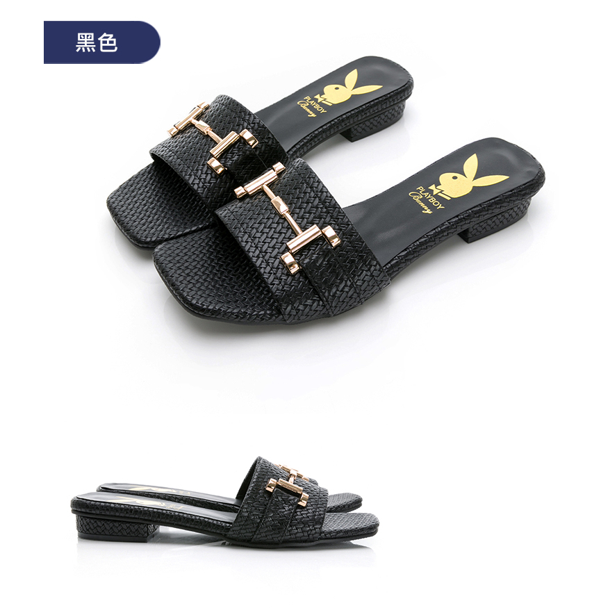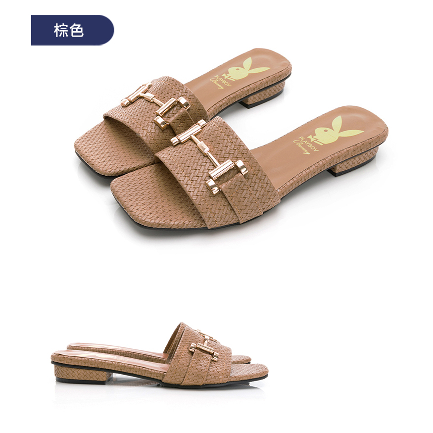 PLAYBOY玩美小時光 愜意初夏編織感低跟涼拖鞋-黑/棕(YD9005)黑,25|棕,23|棕,245|棕,25|黑,235|黑,245|棕,235|棕,24|黑,23|黑,24Flat SandalsPLAYBOY 女鞋官方旗艦店