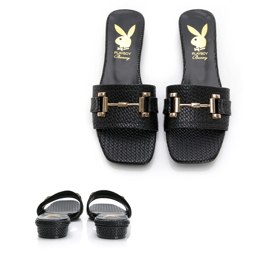 PLAYBOY玩美小時光 愜意初夏編織感低跟涼拖鞋-黑/棕(YD9005)