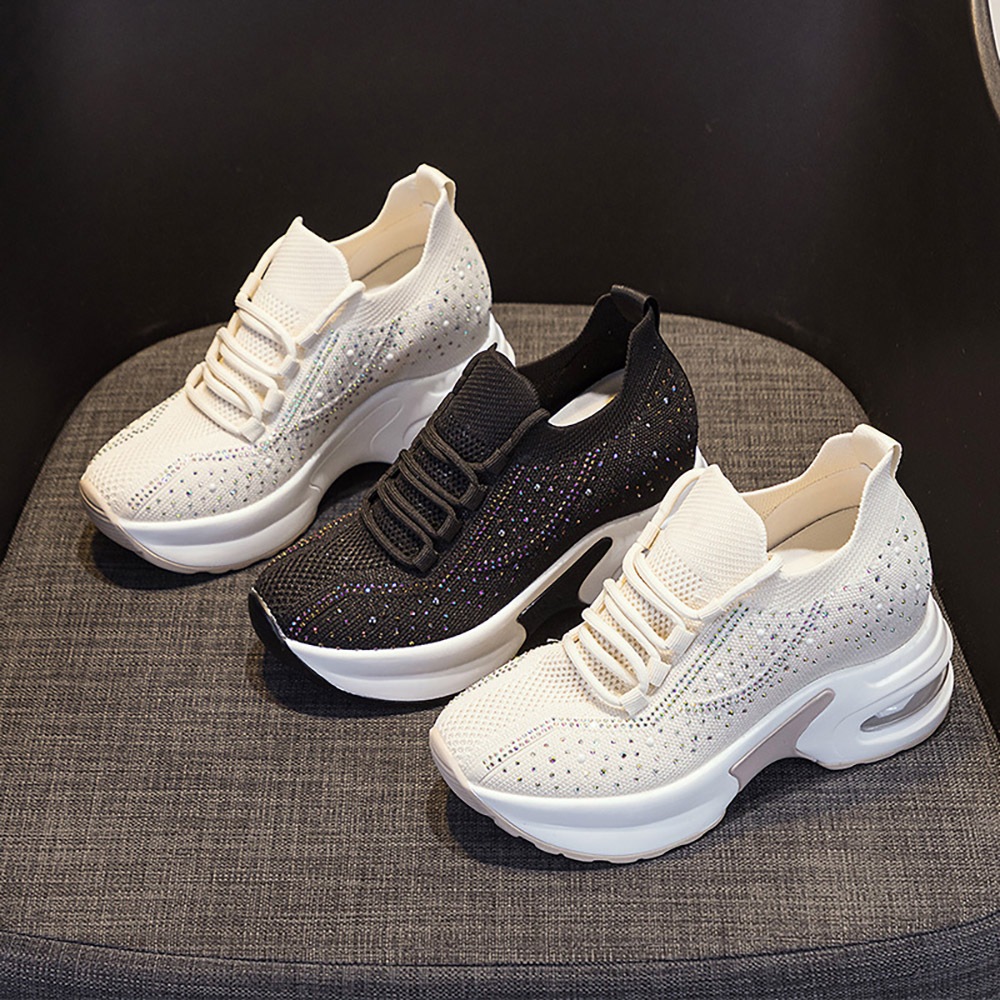 【T2R】正韓空運-透氣飛織水鑽拼貼厚底休閒鞋-增高約8公分-黑/米-5985-2695/5985-2696黑245-NG|米白235-NG|米白240-NG|米白245-NGT2R隱形增高鞋