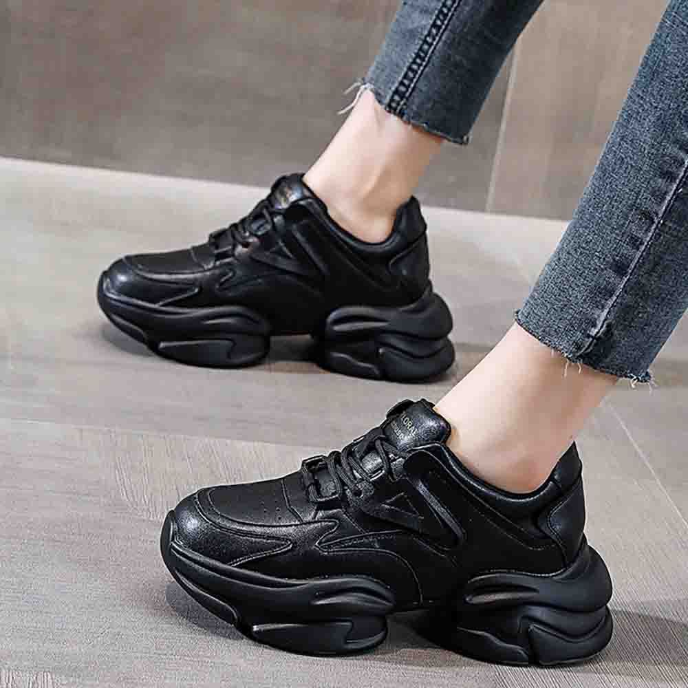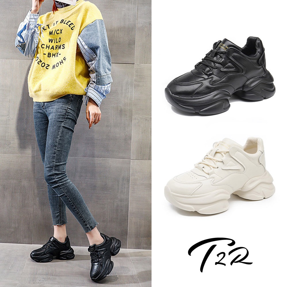 【T2R】正韓空運-真皮造型拼接內增高粗跟厚底老爹鞋-增高約7公分-黑/米-5985-2600/5985-2602黑235|黑245-NG|米235|米230-NG|米235-NG|米245-NGT2R隱形增高鞋
