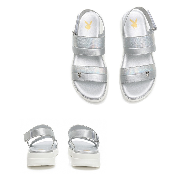 PLAYBOY 個性幻彩 一字寬帶增高涼鞋-黑/銀(Y8295)黑,38|銀,36|銀,38|銀,39|黑,36|黑,37|黑,39|黑,40|銀,37|銀,40Flat SandalsPLAYBOY 女鞋官方旗艦店