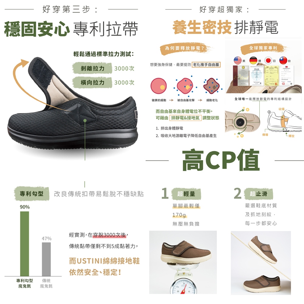 USTINI我挺你健康鞋 瞬好穿綿綿鞋 紅棕色 (接地氣鞋)36|37|38|39|40plus健康醫療專營店