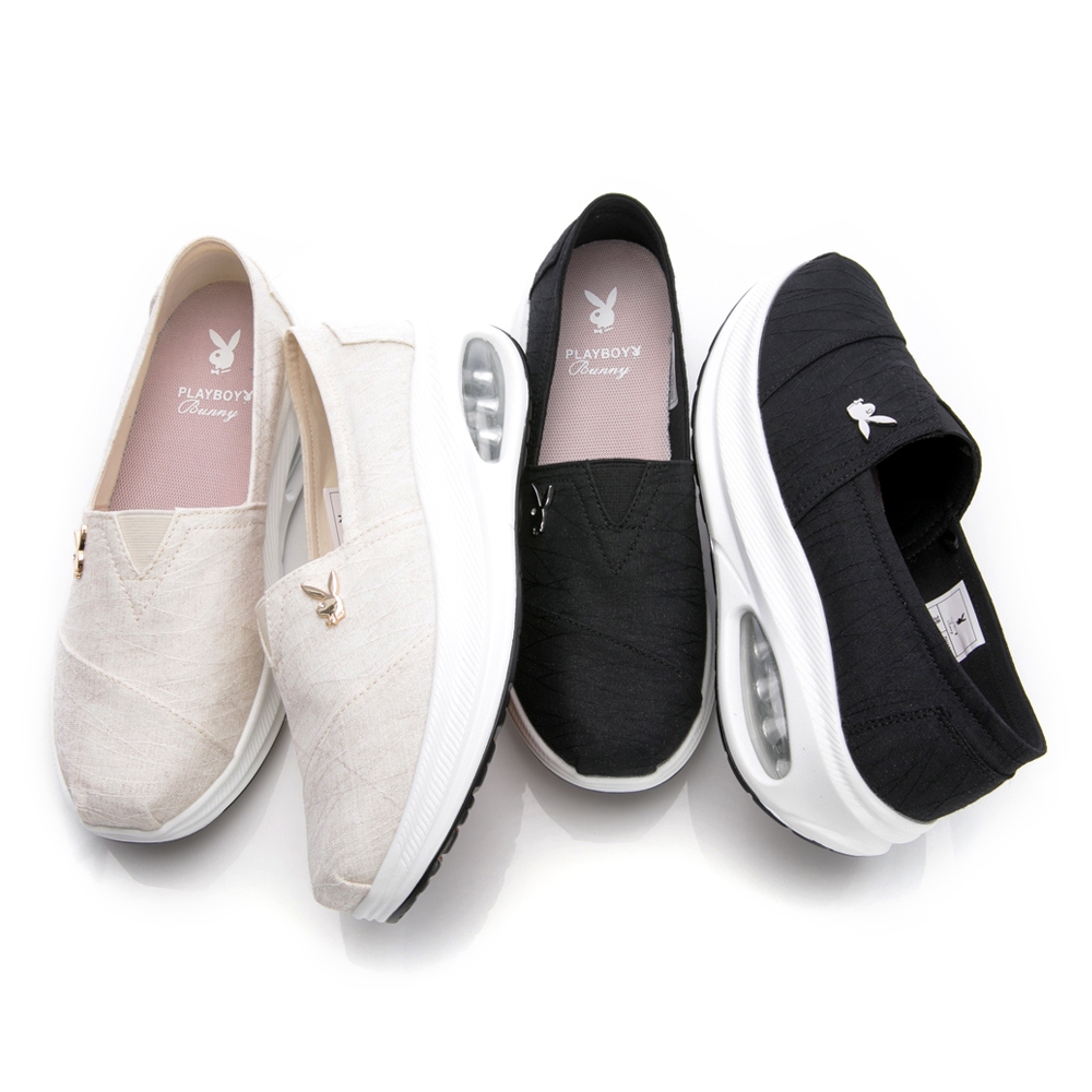 PLAYBOY 午後時光 輕甜休閒氣墊鞋-米白/黑(PY1050)