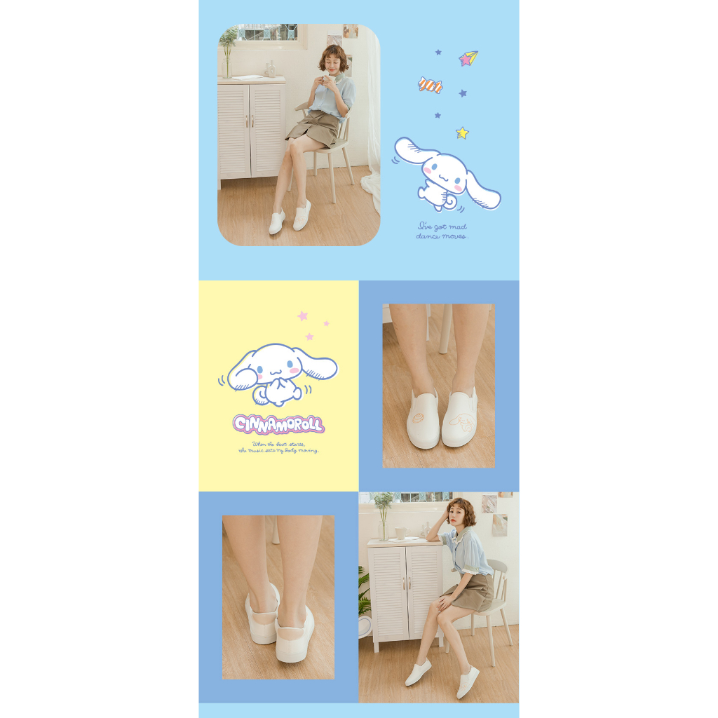 Paidal x Cinnamoroll 大耳狗喜拿肉桂捲電繡休閒鞋懶人鞋不彎腰鞋-小白鞋39|40|36|37|38Slip Ons, Mary Janes & MulesPaidal官方旗艦店