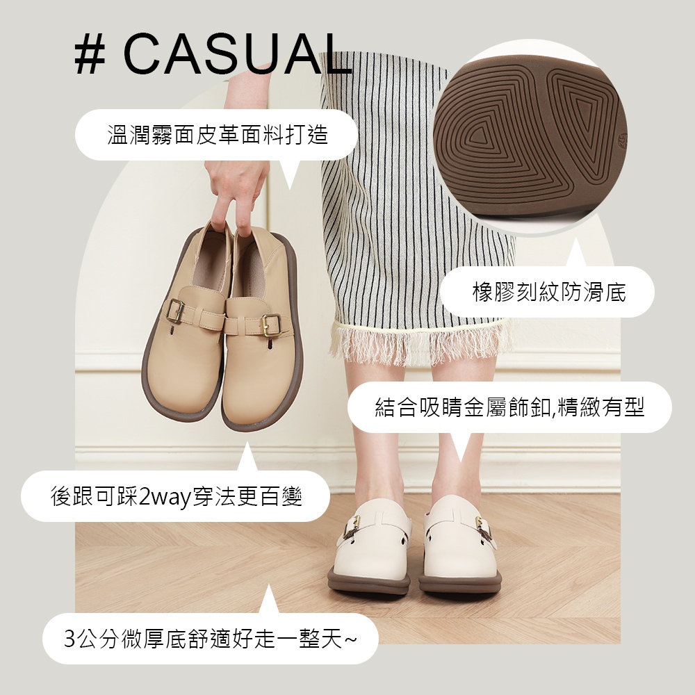 山打努SANDARU-懶人鞋 圓頭皮帶造型微厚底休閒鞋 大尺碼卡其,36|卡其,37|卡其,38|卡其,39|卡其,40|卡其,41|卡其,42|卡其,43|杏,36|杏,37|杏,38|杏,39|杏,40|杏,41|杏,42|杏,43SANDARU 山打努官方旗艦店| 大小尺碼流行女鞋
