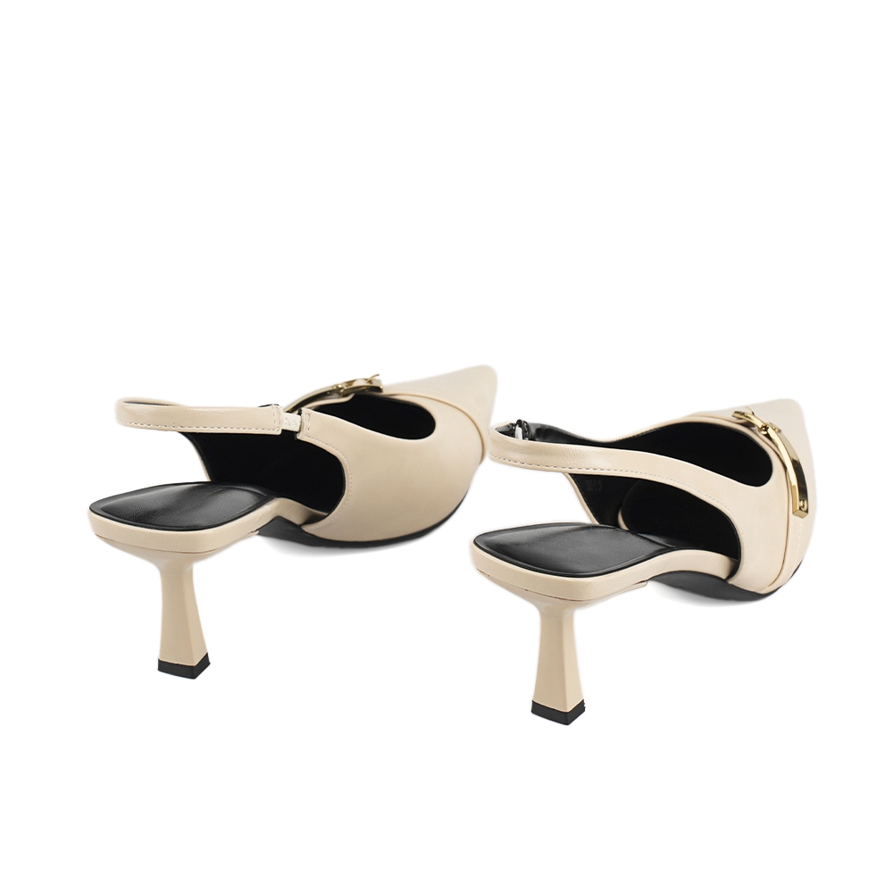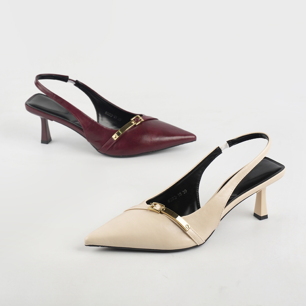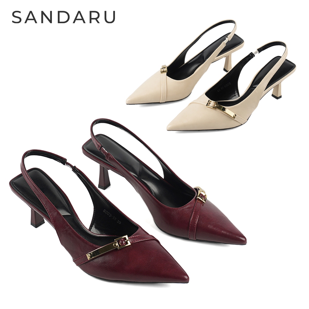 山打努SANDARU-跟鞋 尖頭斜帶金屬飾高跟後空鞋-杏、酒紅