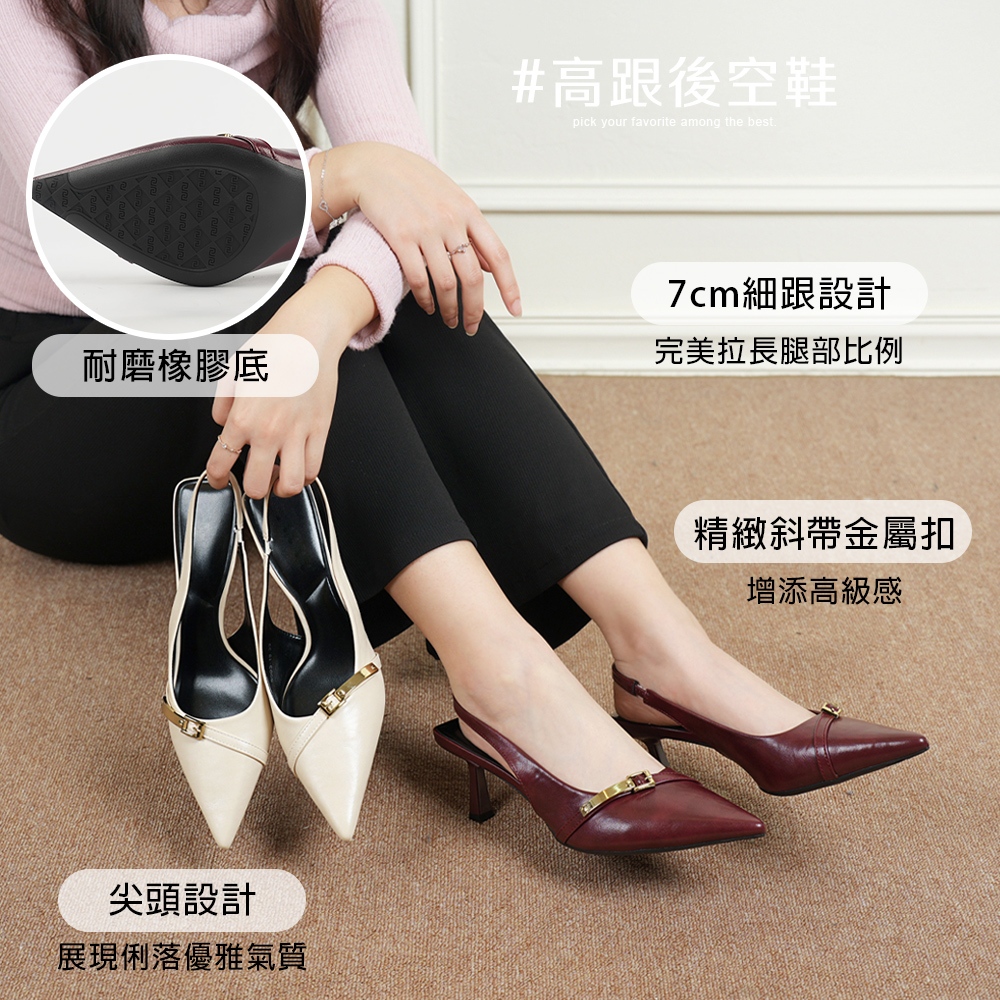 山打努SANDARU-跟鞋 尖頭斜帶金屬飾高跟後空鞋-杏、酒紅杏,35|杏,36|杏,37|杏,38|杏,39|杏,40|酒紅,35|酒紅,36|酒紅,37|酒紅,38|酒紅,39|酒紅,40SANDARU 山打努官方旗艦店| 大小尺碼流行女鞋