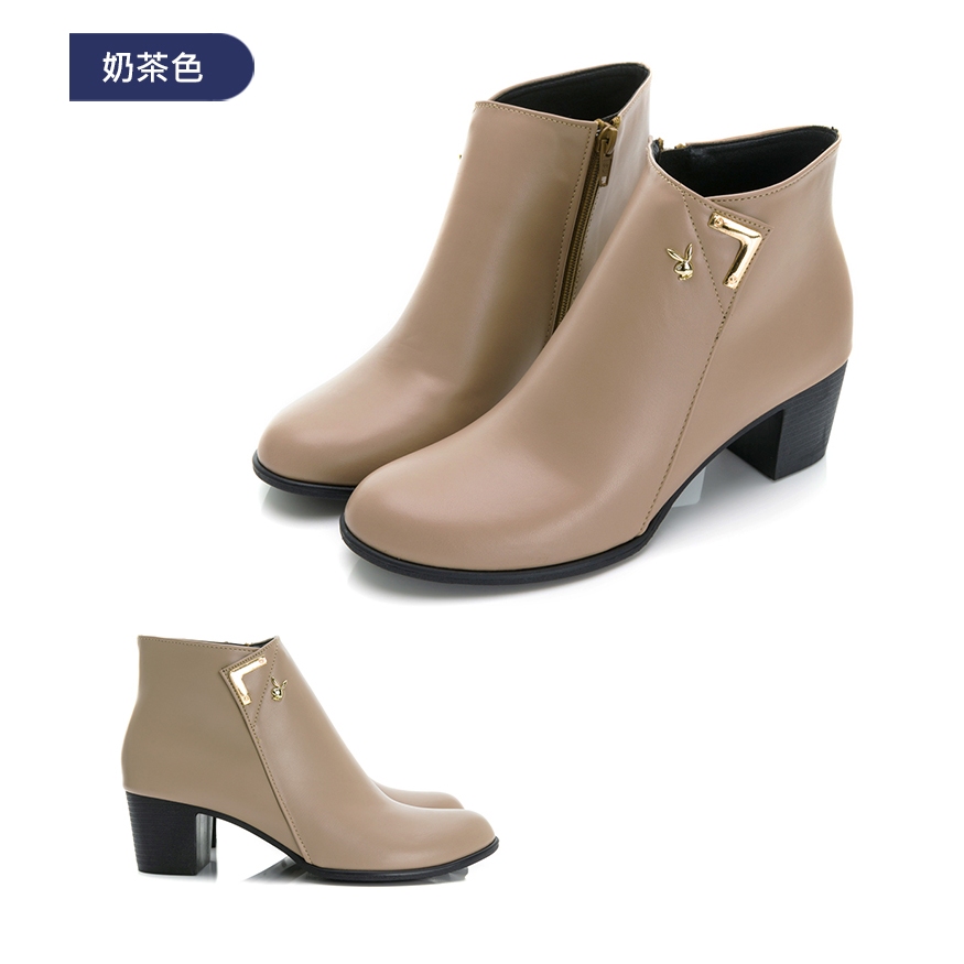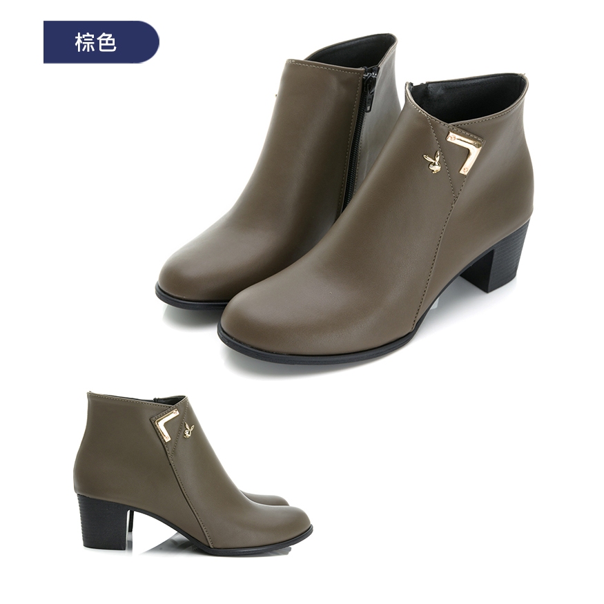 PLAYBOY 簡約霧感 真皮粗跟短靴-咖/黑(PY0686)咖,36|咖,37|咖,38|咖,39|咖,40|黑,36|黑,37|黑,38|黑,39|黑,40Fashion BootsPLAYBOY 女鞋官方旗艦店