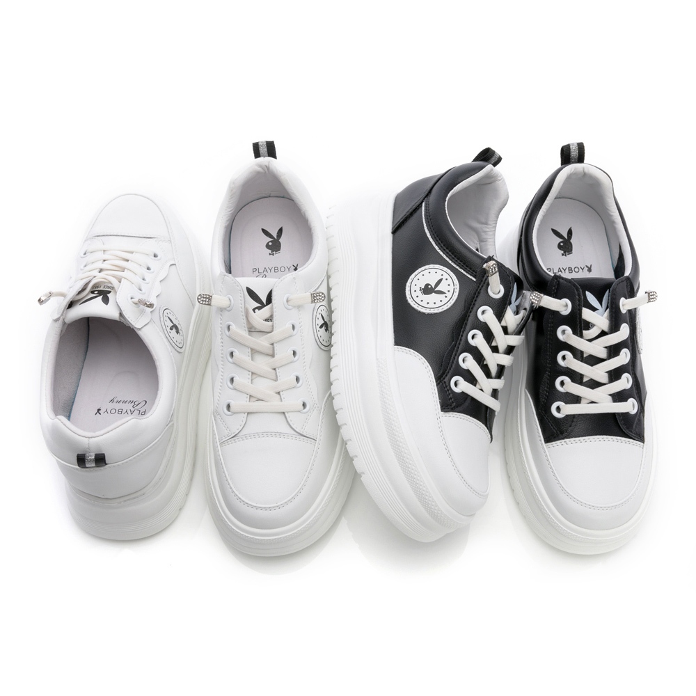 PLAYBOY EasyGO 免綁帶真皮厚底鞋-白/黑(PY0629)黑,38|黑,39|黑,40|白,36|白,37|白,38|白,39|白,40|黑,36|黑,37PLAYBOY 女鞋官方旗艦店
