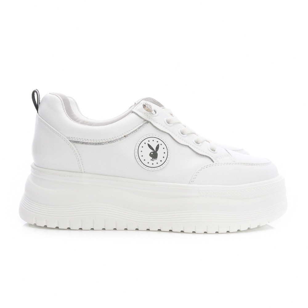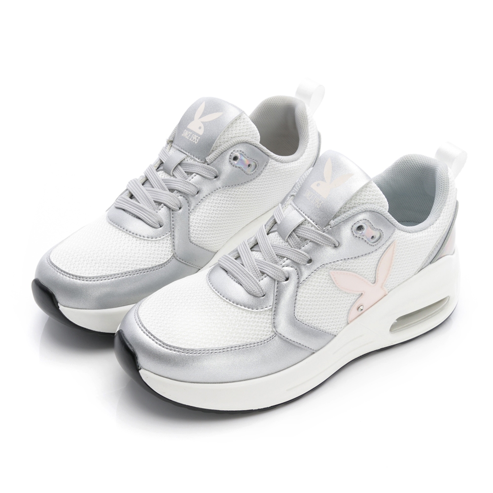PLAYBOY 躍動時刻 戶外休閒增高氣墊鞋-白/白銀/黑(PY1058)