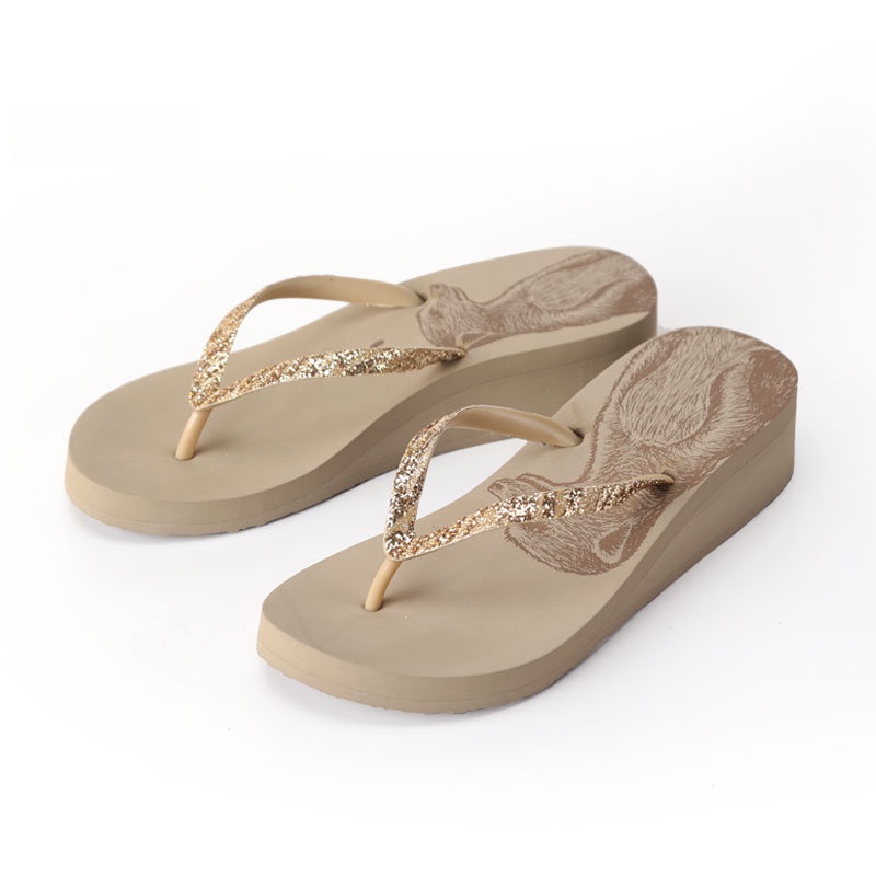 #熱賣新品# 4cm女拖鞋 洛克熊夏季動物系列可愛狐蒙坡跟拖 杏色 原創手繪風 台灣品牌人字拖