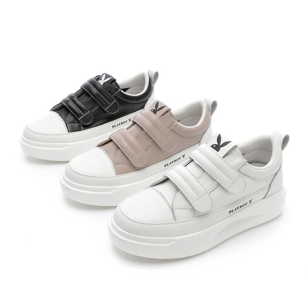 PLAYBOY 日式極簡 牛皮輕盈休閒鞋-奶茶/白/黑(PY1106)