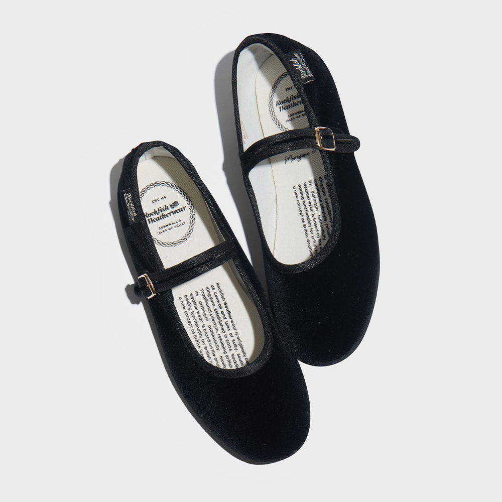 ROCKFISH BELLA MARYJANE FLAT 瑪莉珍鞋 平底 舒適 彈性 海綿鞋墊 天鵝絨 純黑色 女鞋24CM(UK4.5)|24.5CM(UK5)|25CM(UK5.5)|25.5CM(UK6)|23CM(UK3.5)|23.5CM(UK4)Rockfish Weatherwear 官方旗艦店