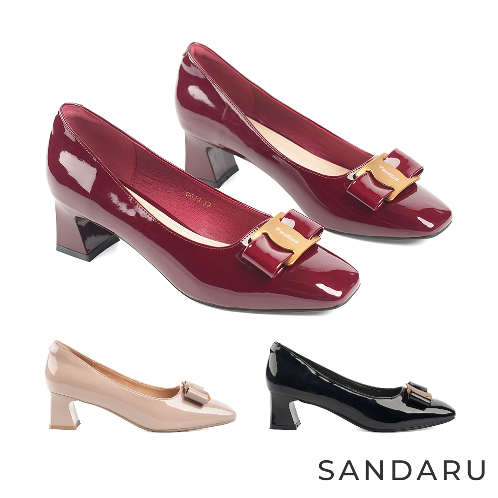 山打努SANDARU-跟鞋 方頭金飾蝴蝶結漆皮中跟鞋黑,36|黑,37|黑,38|黑,39|黑,40|紅酒,36|紅酒,37|紅酒,38|紅酒,39|紅酒,40|奶茶,36|奶茶,37|奶茶,38|奶茶,39|奶茶,40SANDARU 山打努官方旗艦店| 大小尺碼流行女鞋