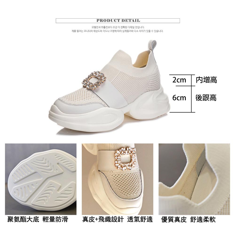 【T2R】正韓空運-飛織真皮拼接方鑽造型內增高厚底懶人鞋-增高約8公分-黑/米-5985-2635/5985-2636黑245|黑230-NG(掉鑽)|米235|米240-NGT2R隱形增高鞋