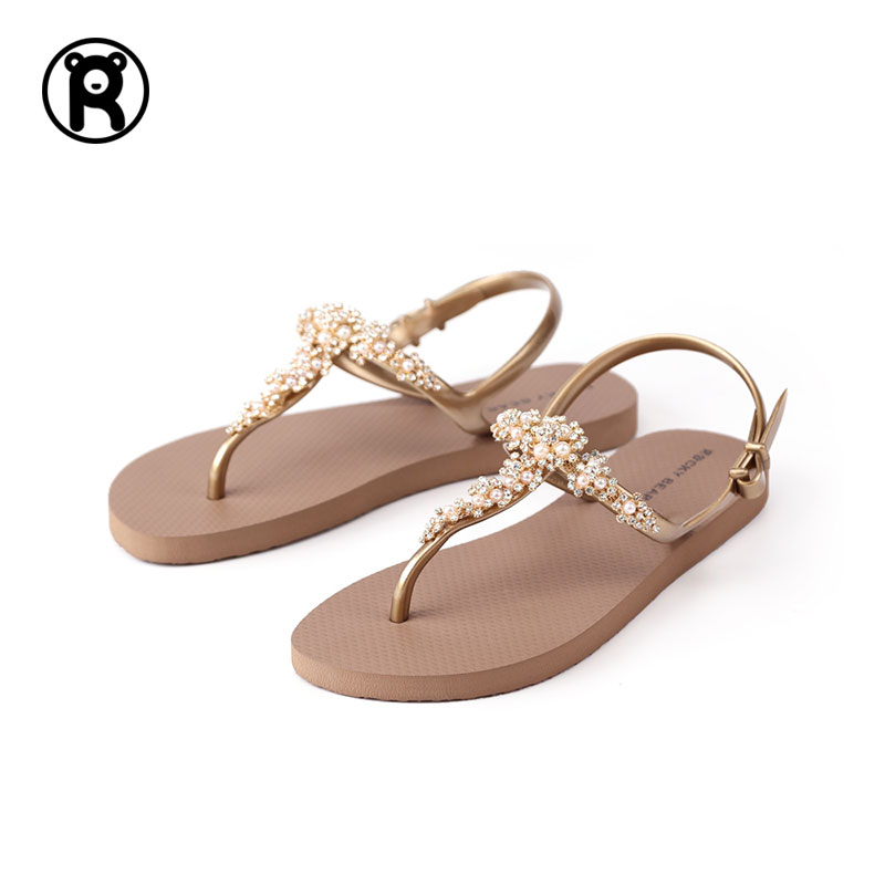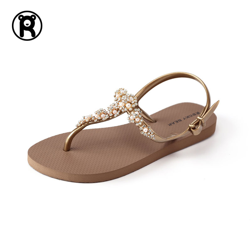 洛克熊優雅T字水鑽珍珠涼鞋36|37|38|35|40|39Flat SandalsROCKYBEAR 洛克熊 涼拖鞋官方購物網