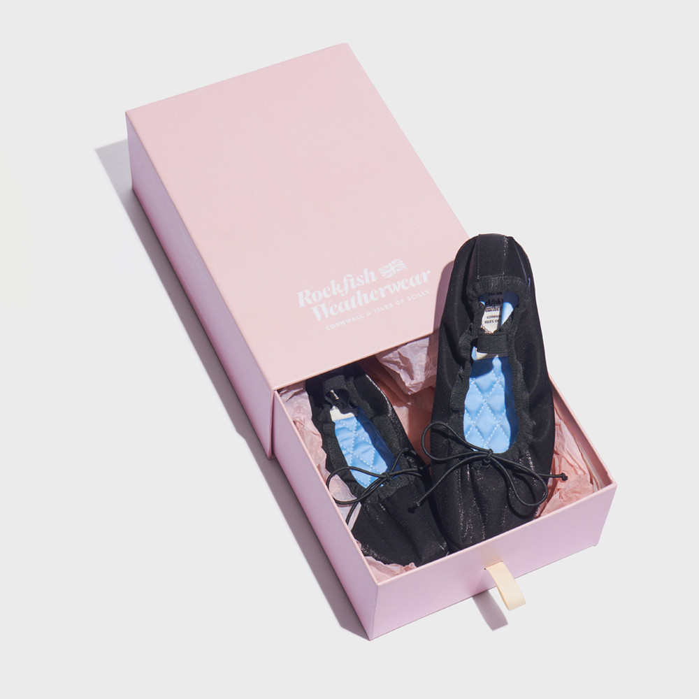 ROCKFISH WISLEY QUILTED SCRUNCH FLAT 絎縫 芭蕾舞鞋 平底 皺褶 緞面 黑色 女鞋23CM(UK3.5)|23.5CM(UK4)|24CM(UK4.5)|24.5CM(UK5)|25CM(UK5.5)|25.5CM(UK6)Rockfish Weatherwear 官方旗艦店