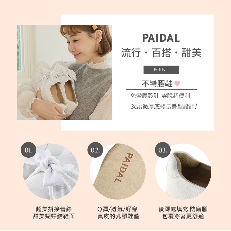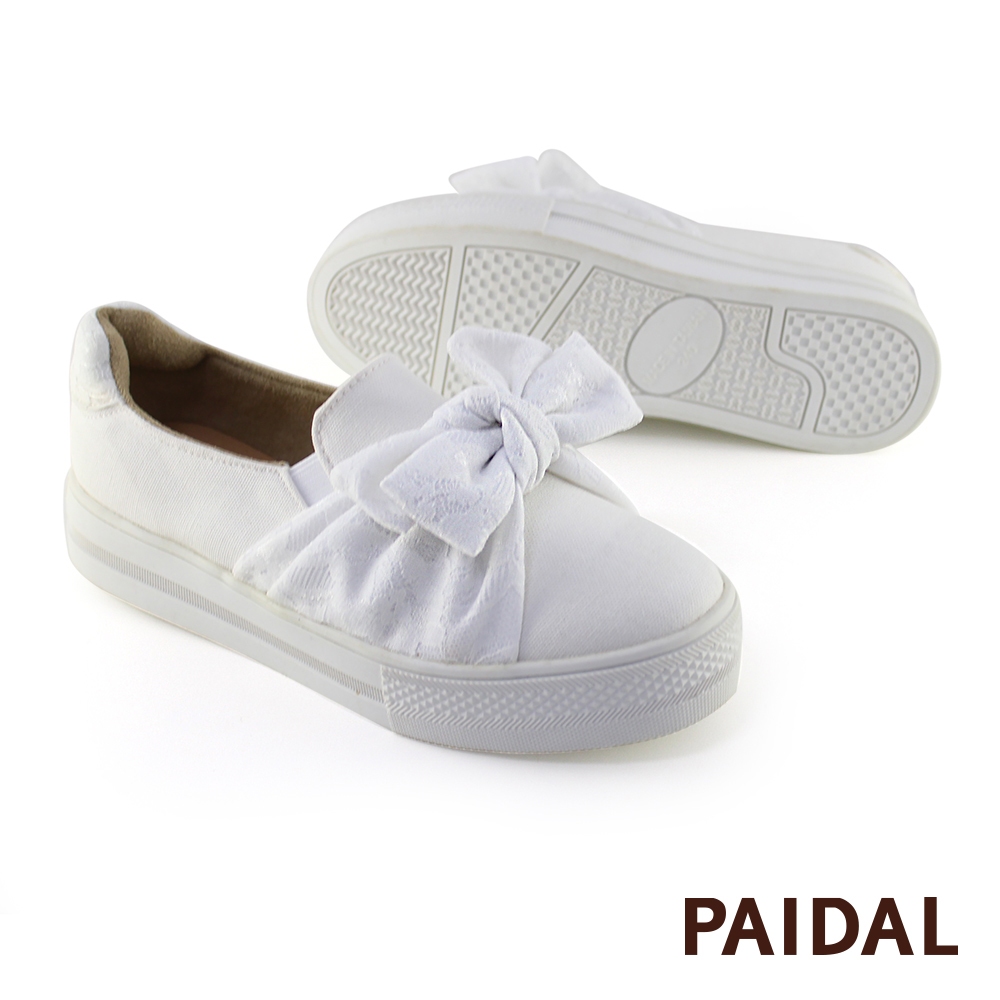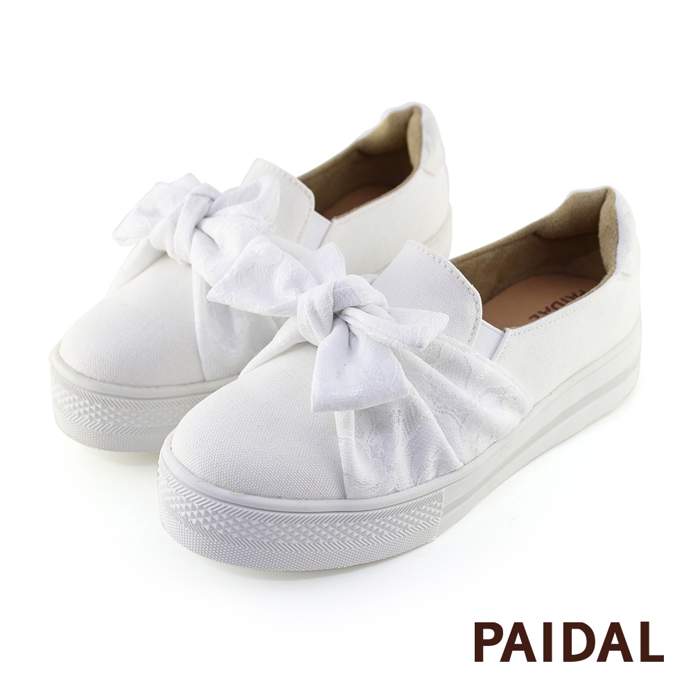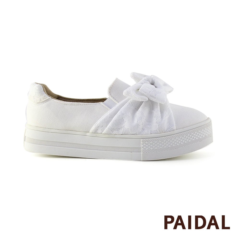 Paidal 蕾絲大蝴蝶厚底懶人鞋不彎腰鞋-小白鞋37|38|39|40|41|42|36Slip Ons, Mary Janes & MulesPaidal官方旗艦店