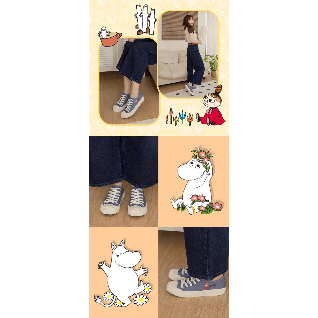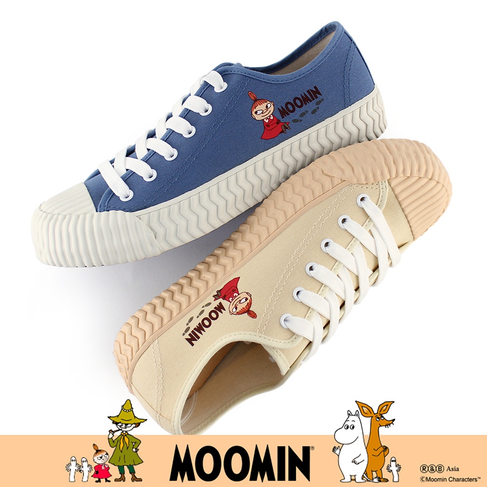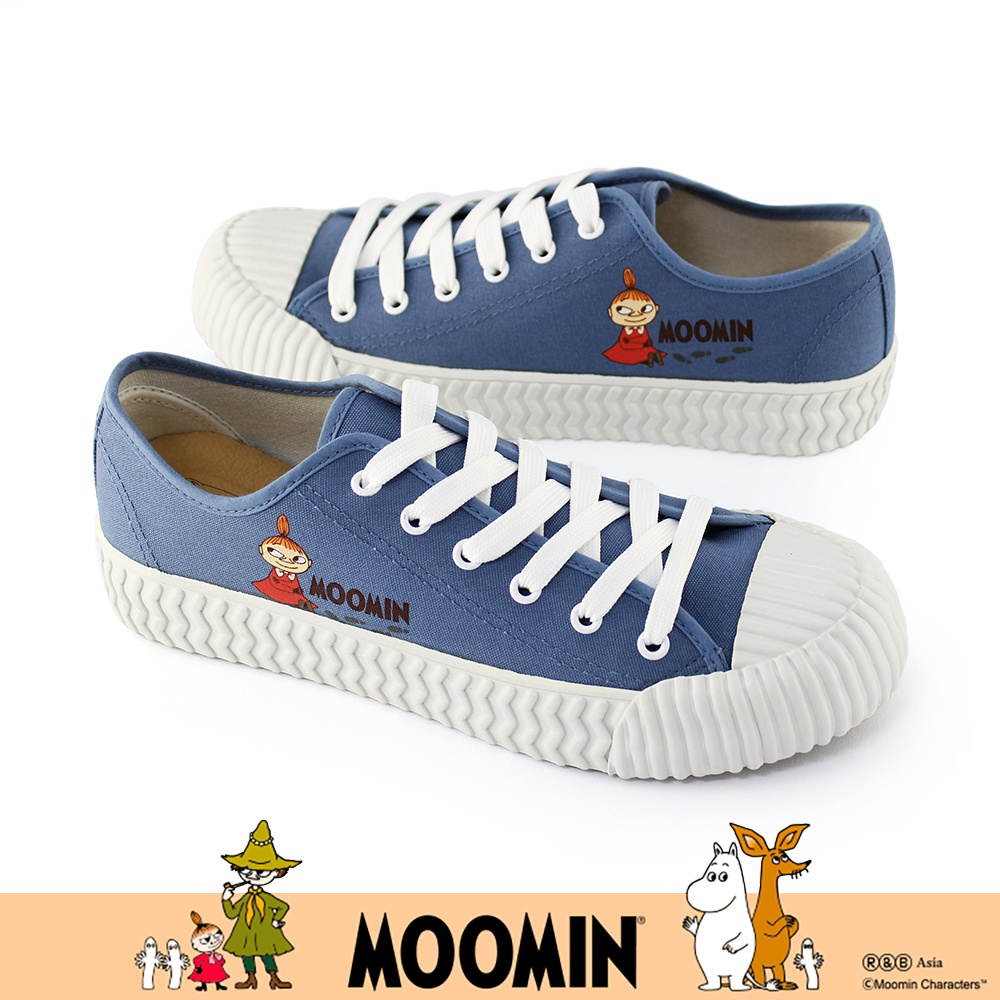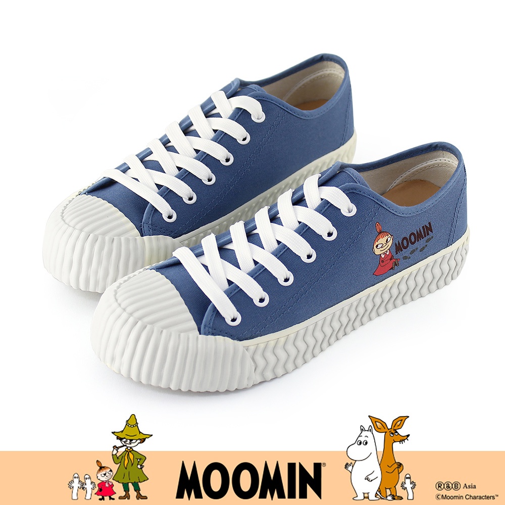 Paidal x Moomin姆明谷 小美小鞋印帆布鞋綁帶餅乾鞋-藍