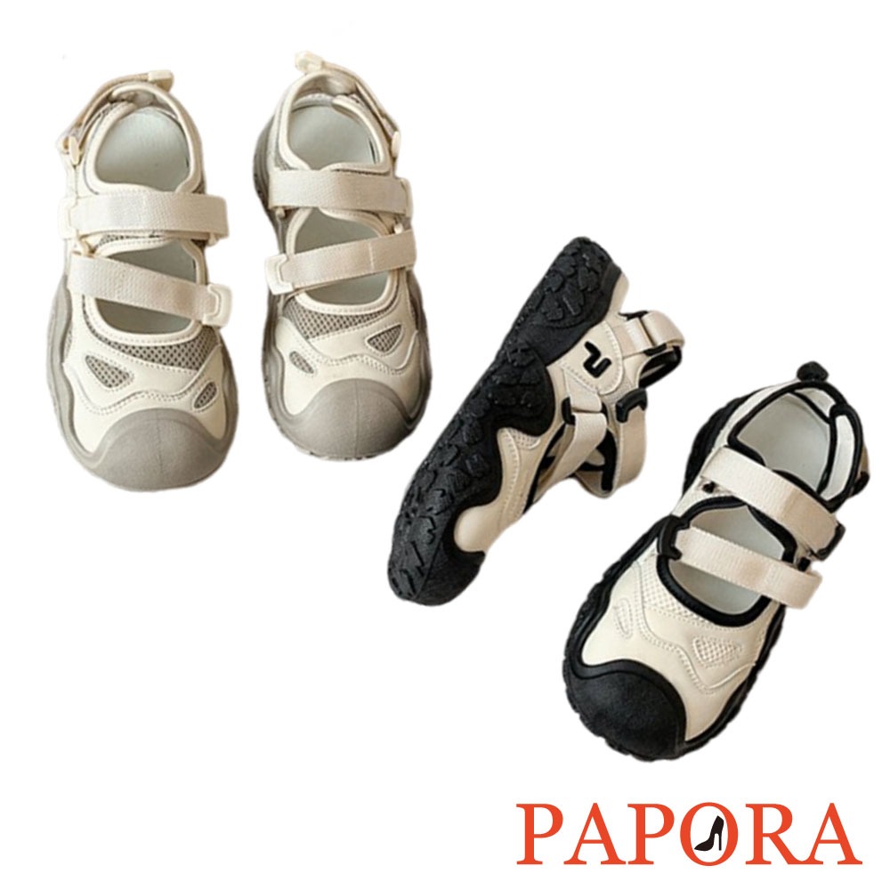 PAPORA 魔鬼氈瑪莉珍厚底運動板鞋 醜萌鏤空小白鞋 ~ 正常黑,36|黑,37|黑,38|黑,39|黑,40|米,36|米,37|米,38|米,39|米,40PAPORA女鞋