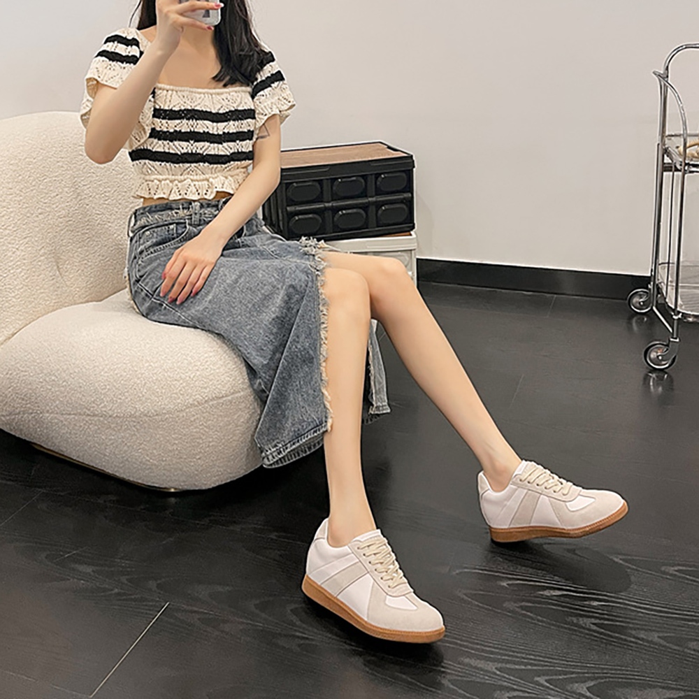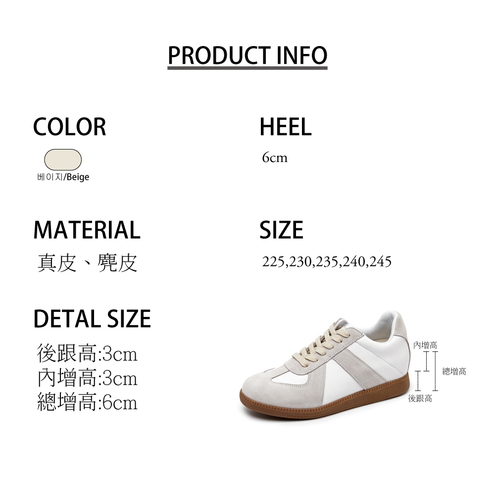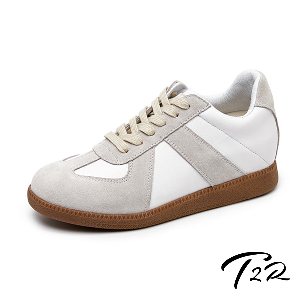 【T2R】正韓空運-真皮麂皮拼接內增高復古阿甘鞋-增高約6公分-米-5985-2752230|235|240|245T2R隱形增高鞋
