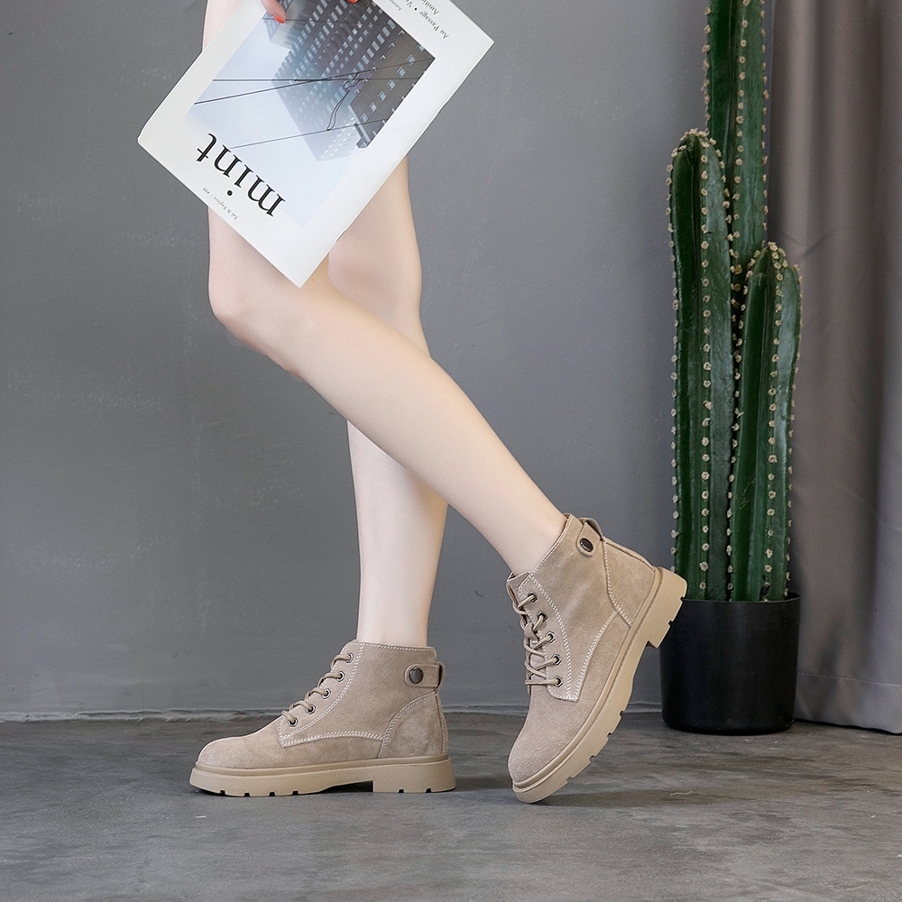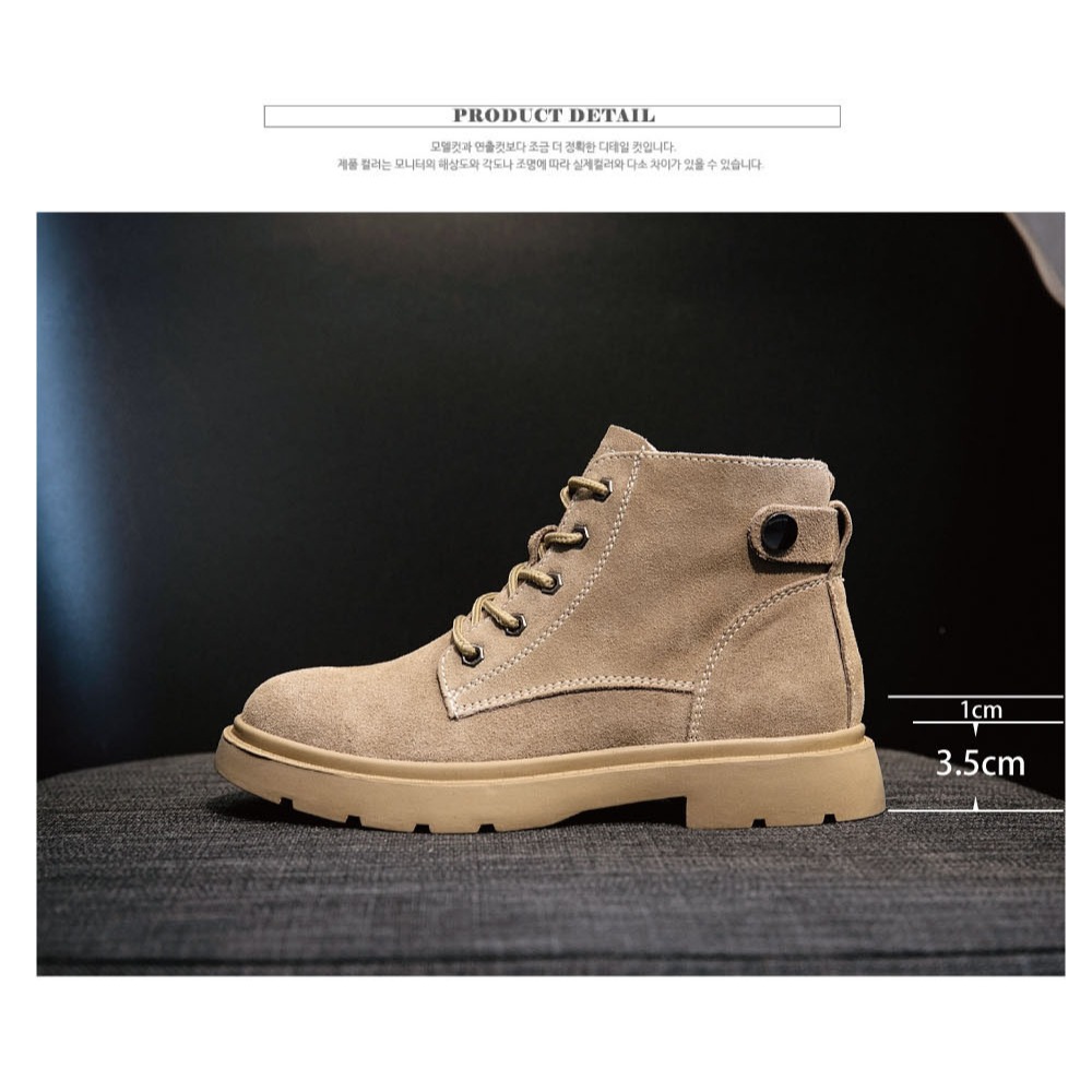 【T2R】正韓空運-增高鞋真皮素面綁帶短靴-增高4.5公分-黑/卡其-5985-2060/5985-2061黑250|卡其240|卡其245|卡其250Fashion BootsT2R隱形增高鞋