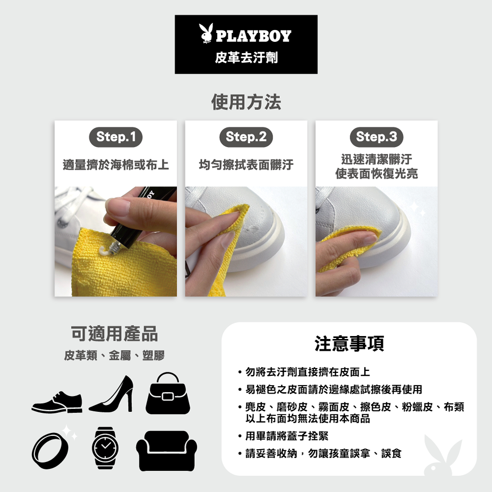 皮革去污劑 – 台灣哥倫製 1入 (Y4003)1入Shoe Care & Cleaning ToolsPLAYBOY 女鞋官方旗艦店
