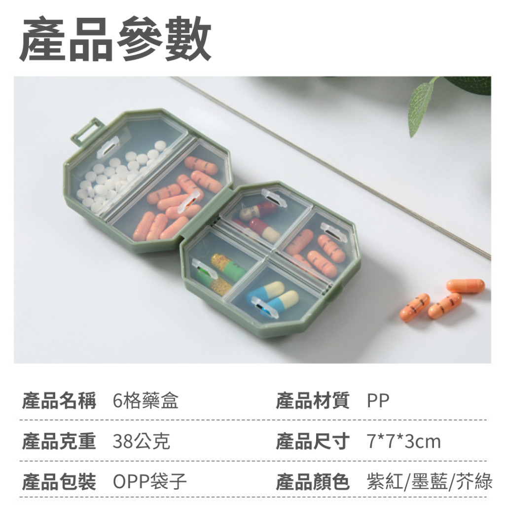 六格藥盒 隨身收納盒 便攜式藥盒藍色|綠色OthersT.K.胎王商城旗艦店