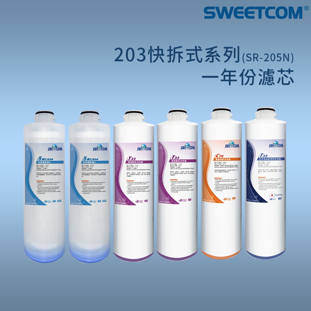 【思維康SWEETCOM】203快拆式濾芯 適SR-205N機型 一年份組(6支) 台灣製造(不含RO膜)【思維康SWEETCOM】203快拆式濾芯 適SR-205N機型 一年份組(6支) 台灣製造(不含RO膜)Water Filters, Coolers & DispensersSWEETCOM思維康淨水設備旗艦店