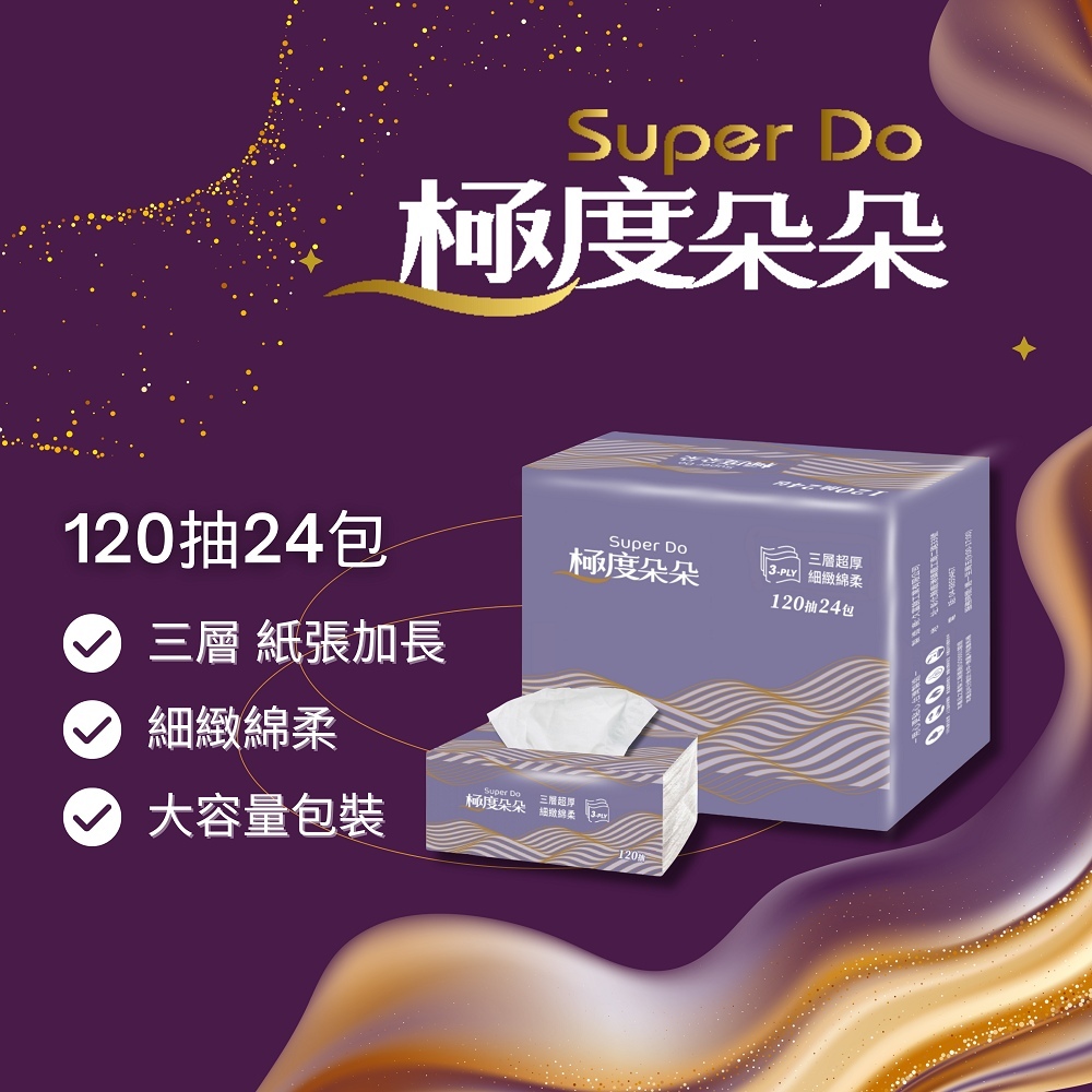 Super Do極度朵朵 三層超厚柔抽取式花紋衛生紙120抽24包3串/箱Super Do極度朵朵 三層超厚柔抽取式花紋衛生紙120抽24包3串/箱Tissue & Paper TowelsSuperpure極度淳-清潔日用量販