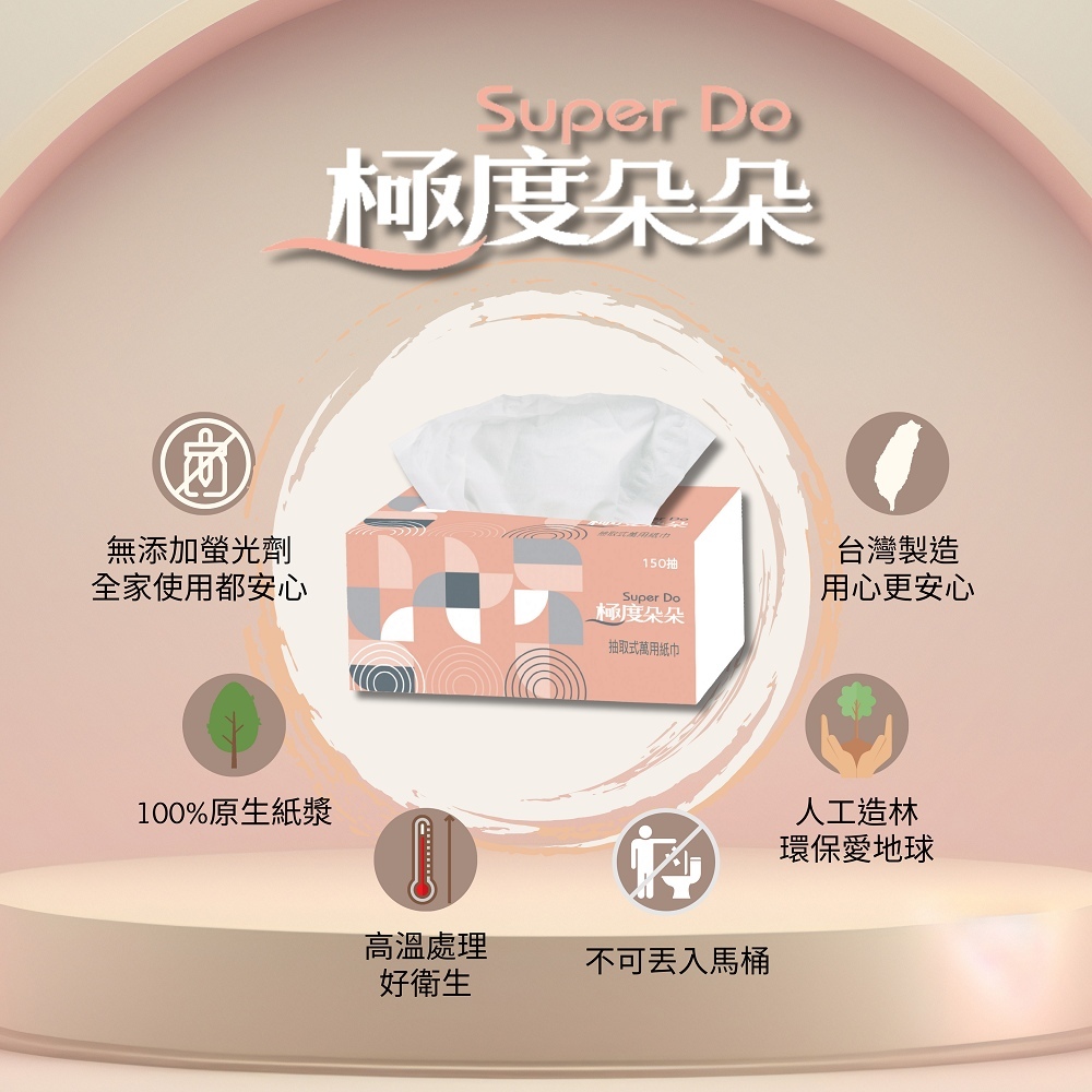 Super Do極度朵朵 抽取式花紋萬用紙巾150抽84包/箱Super Do極度朵朵 抽取式花紋萬用紙巾150抽84包/箱Tissue & Paper TowelsSuperpure極度淳-清潔日用量販
