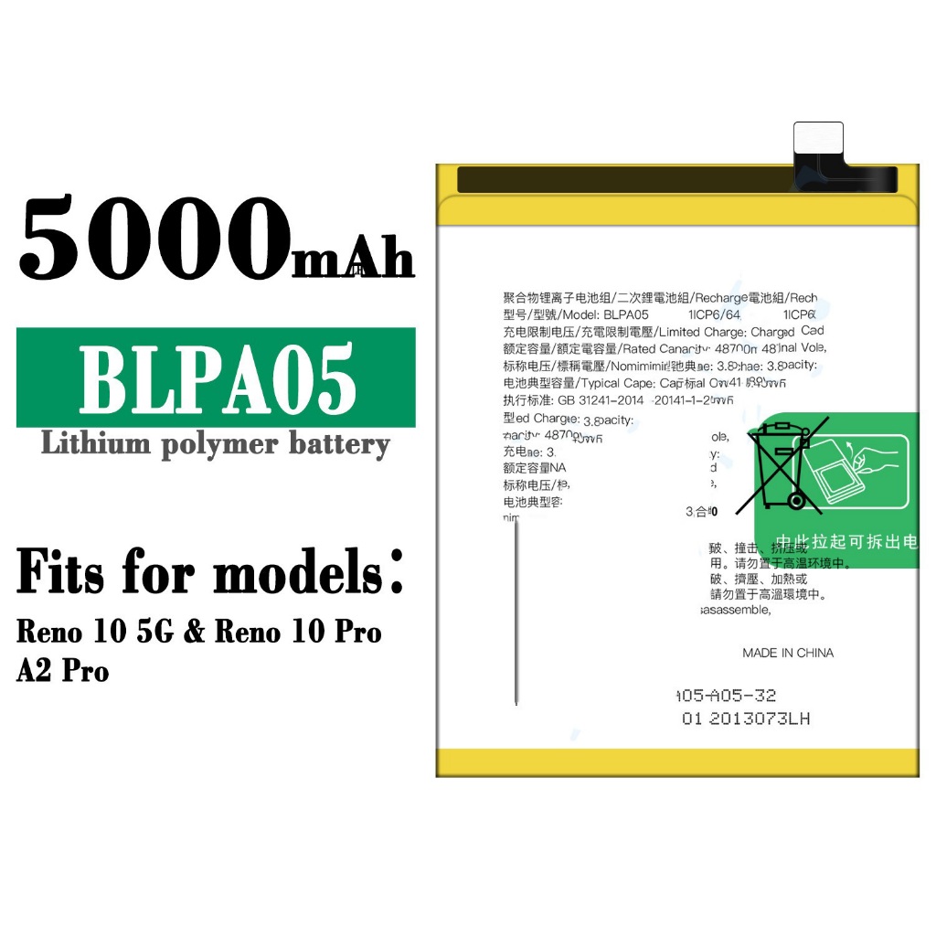 適用於OPPO Reno 10 5G/Reno 10 Pro/A2 Pro手機充電池BLPA05批發