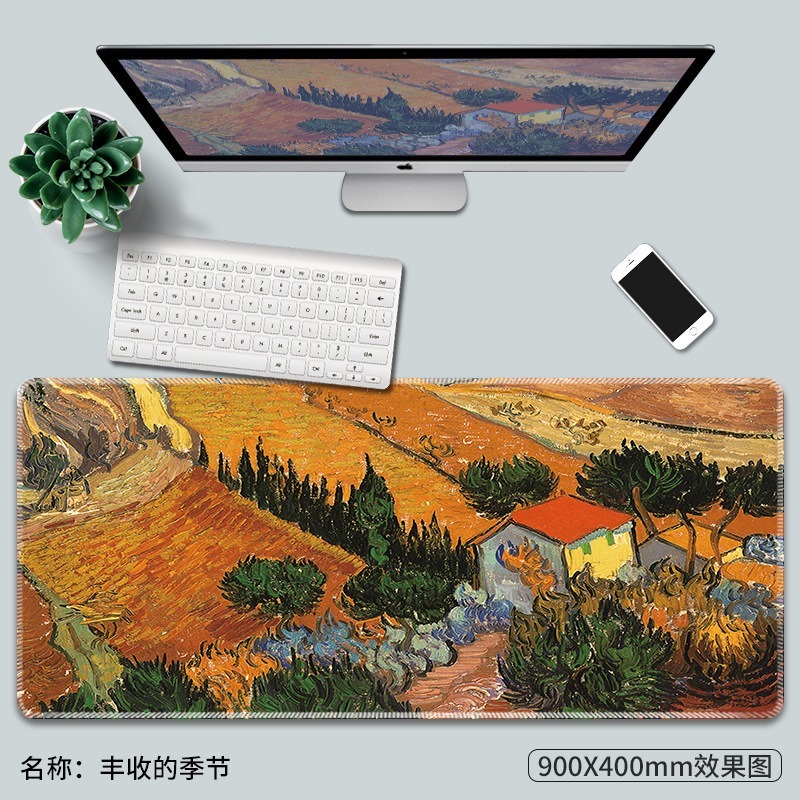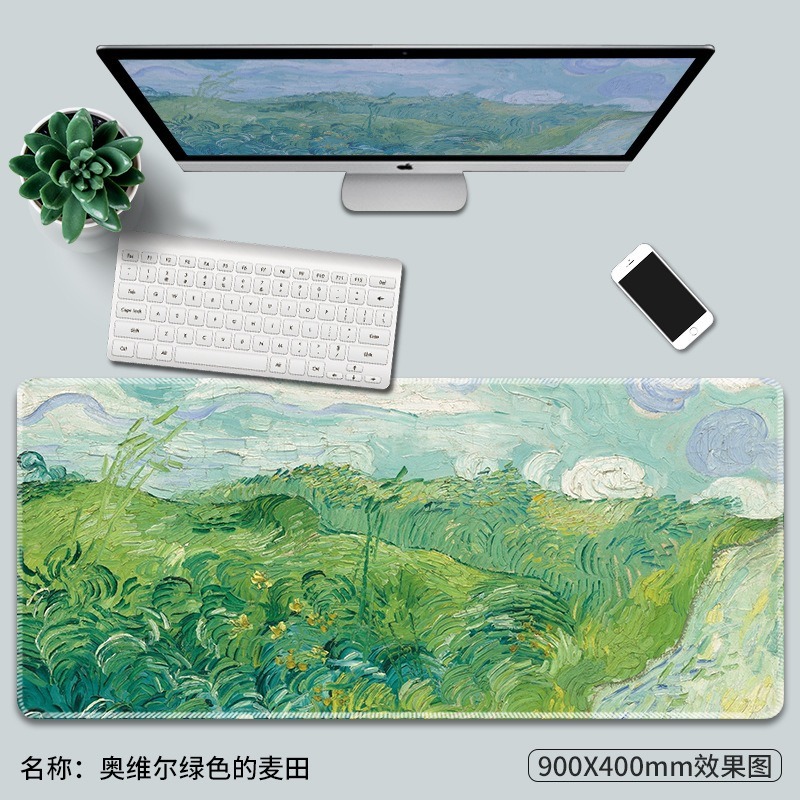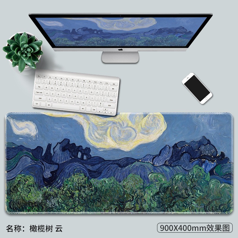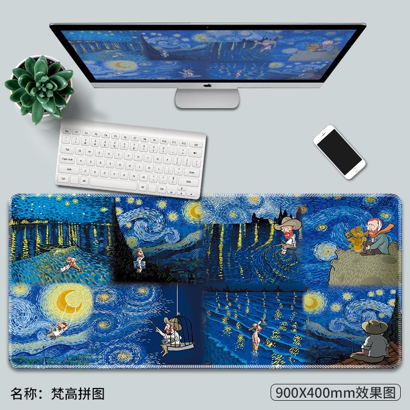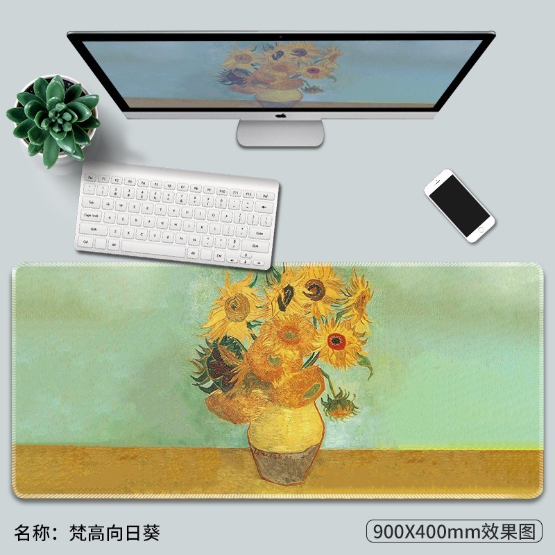Van Gogh梵高油畫鼠標墊子超大創意電腦防滑莫奈復古藝術大號桌面桌墊加厚