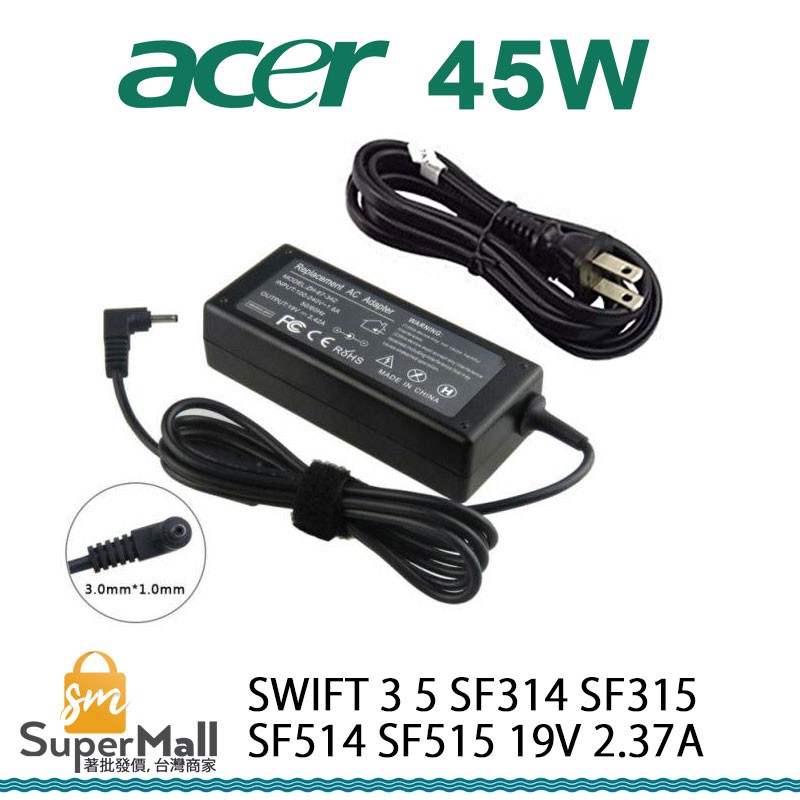 充電器 適用於 宏碁 ACER 變壓器 Swift 3 SF314 SF315 SF514 19V 2.37A 45W充電器 適用於 宏碁 ACER 變壓器 Swift 3 SF314 SF315 SF514 19V 2.37A 45WLaptop Chargers & AdaptorsSuperMall 3C