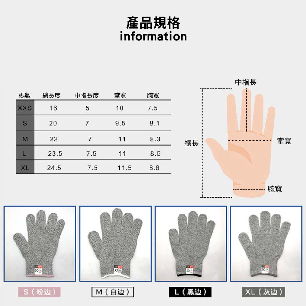 食品工業級 5級HPPE防割工作手套|XS/S/M/L/XL碼|一對售|工作手套/作業手套/無塵室手套/搬家手套灰色粉邊 S碼|灰色白邊 M碼|灰色黑邊 L碼|灰色灰邊 XL碼|灰色藍邊 XS碼Aprons & Kitchen GlovesSUNYES 官方旗艦店
