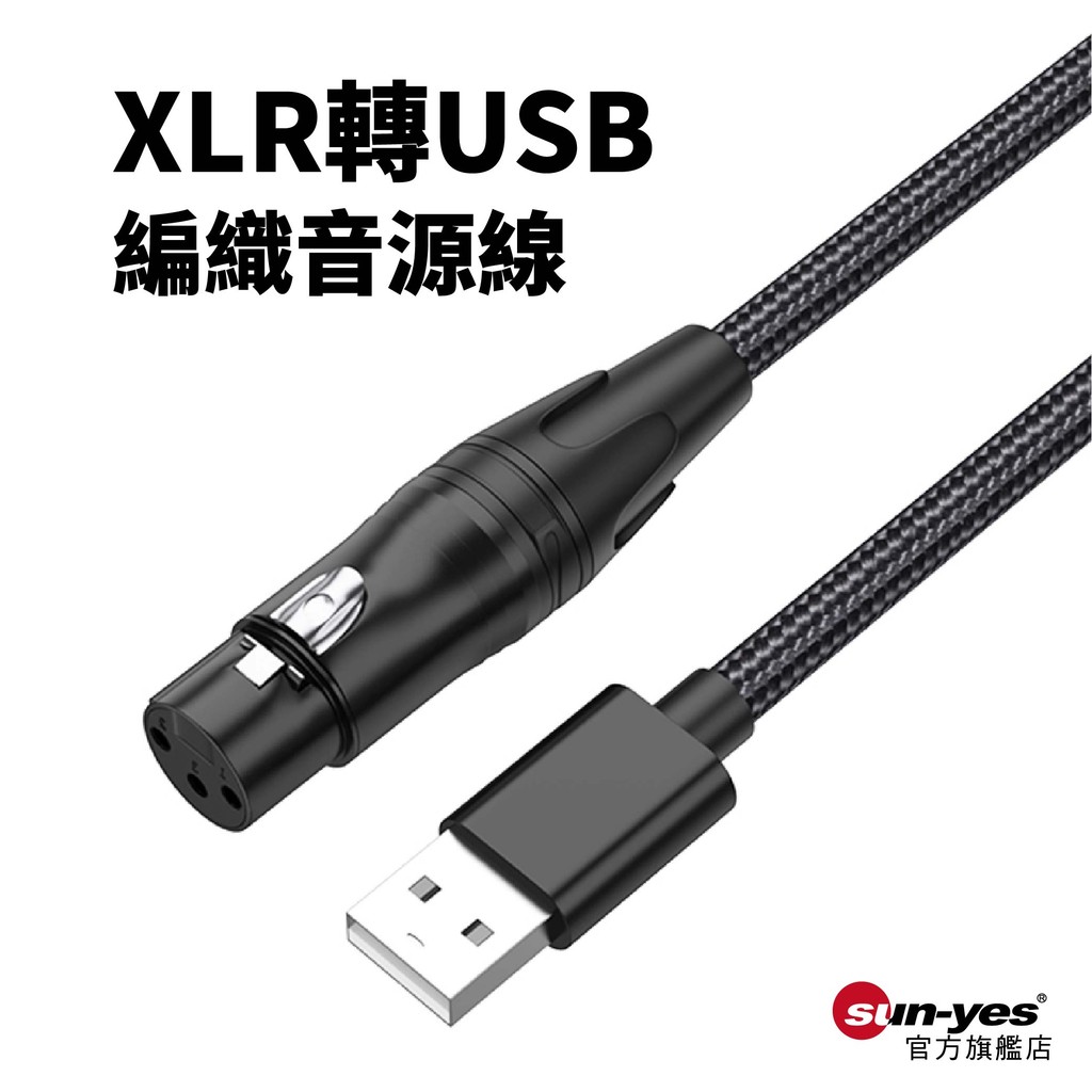 XLR轉USB編織音源線|1-3m|SY-544|電腦麥克風線/動圈是麥克風線/調音台音源線XLR母轉USB公,1m|XLR母轉USB公,2m|XLR母轉USB公,3m|XLR公轉USB公,1m|XLR公轉USB公,2m|XLR公轉USB公,3mSUNYES 官方旗艦店