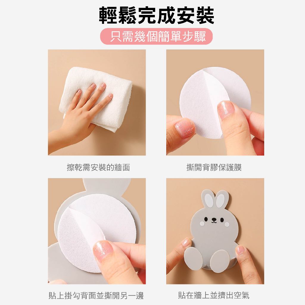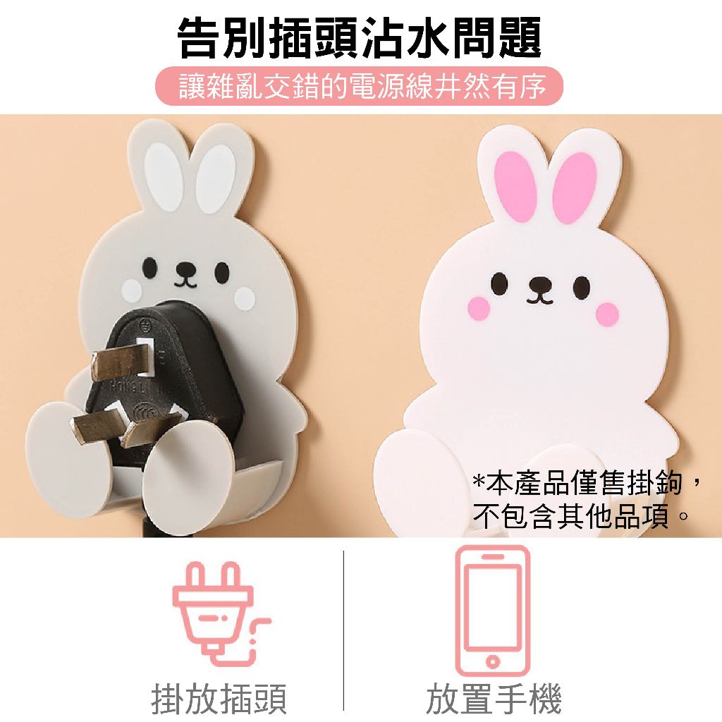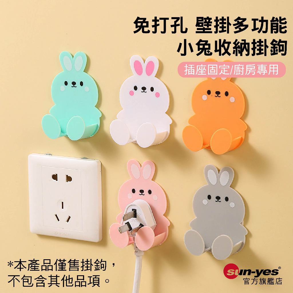 免打孔 壁掛多功能小兔收納掛鉤|插座固定架/廚房專用|SY-816|刮鬍刀架/防水防潮/不留痕跡/置物架灰色|白色|橙色|綠色|粉色HooksSUNYES 官方旗艦店