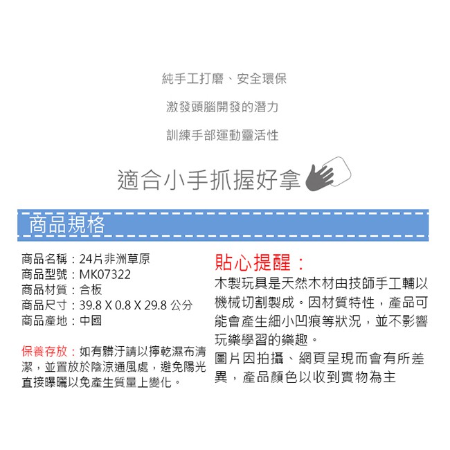 【英國Masterkidz】24片木製拼圖-非洲草原【英國Masterkidz】24片木製拼圖-非洲草原Educational ToysSunnybaby生活館