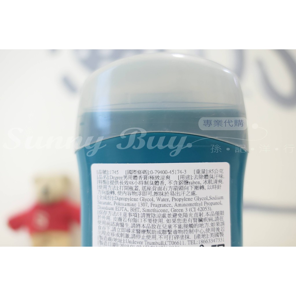 美國 Degree 男性專用運動 48小時長效型體香膏 85g【Sunny Buy】北極邊緣/Arctic Edge|極致涼爽/Cool Rush|極度運動/Intense SportBody DeodorantsSunny Buy 孫記洋行 官方商城