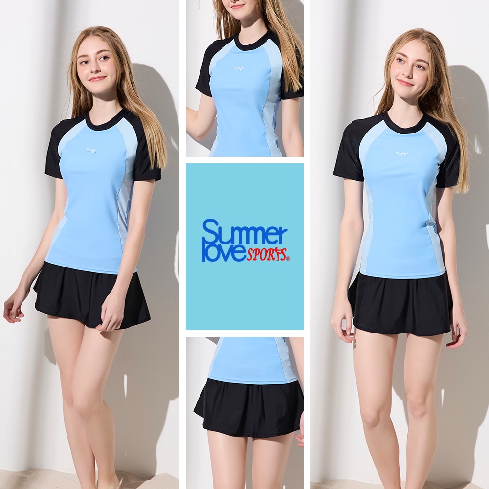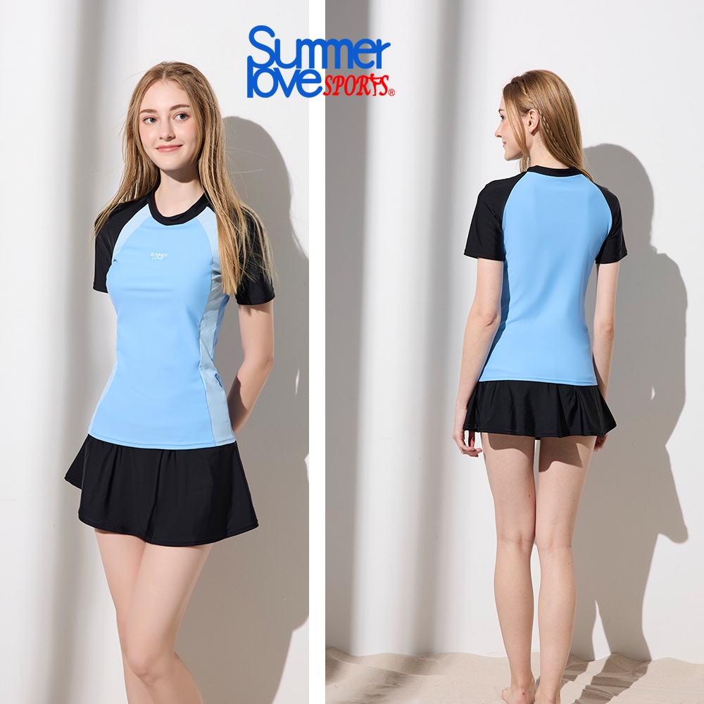 夏之戀SUMMERLOVE大女短袖長版二件式(褲連裙) 泳衣-S25717 加大碼/顯瘦/短袖/衝浪M-02|L-03|2L-04|3L-05Swimming AttireSUMMER LOVE 夏之戀泳裝