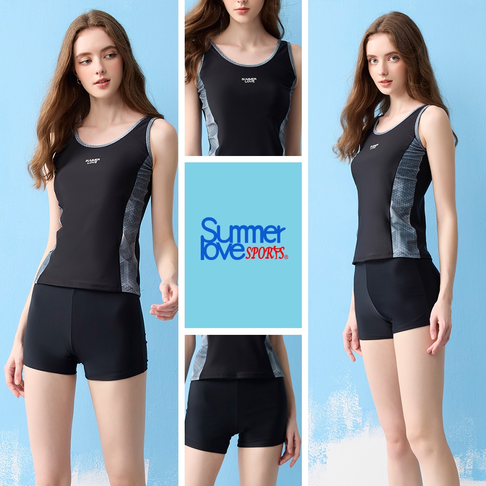 夏之戀SUMMER LOVE SPORT大女短袖衝浪裝二件式(褲連裙)C25705M-02|L-3|2L-04Swimming AttireSUMMER LOVE 夏之戀泳裝