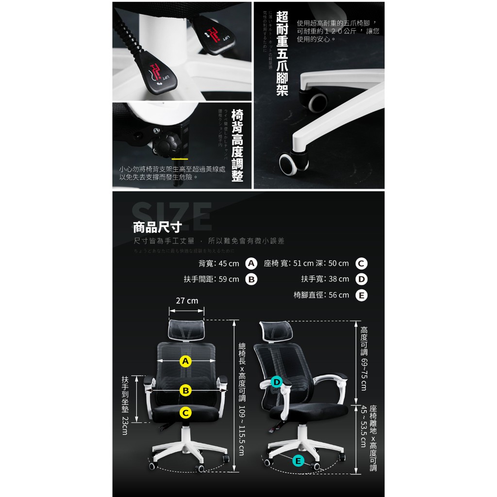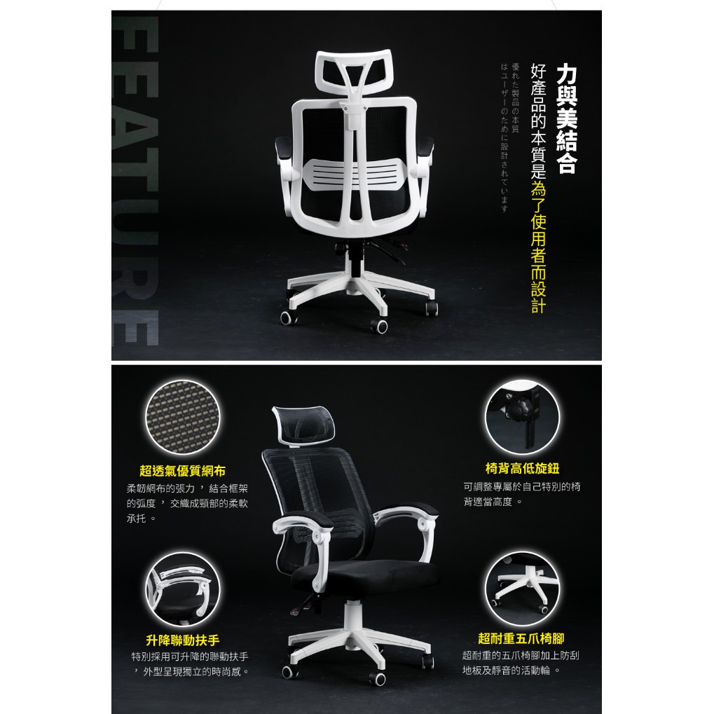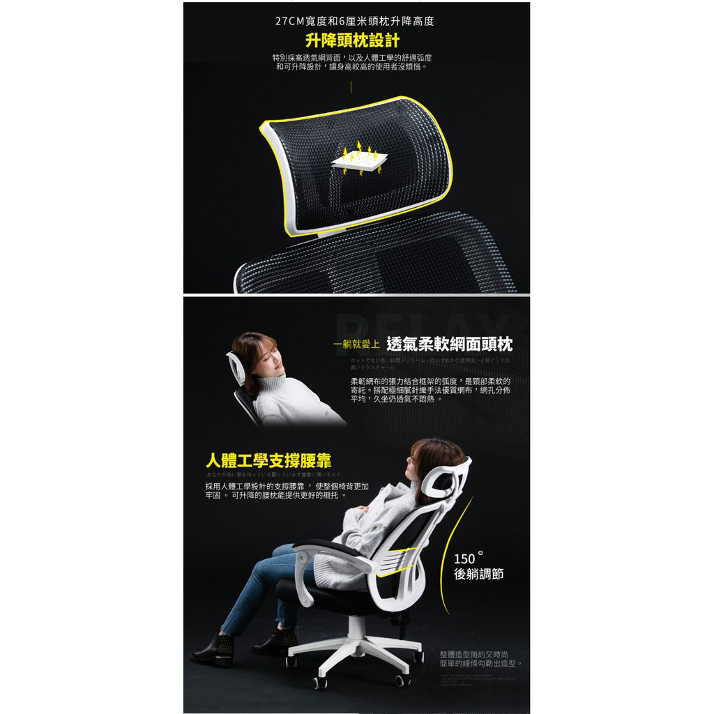 STYLE格調|升降式頭枕機能型寬背護脊工學電腦椅【ID-022】電腦椅 主管椅 辦公椅 會議椅 洽談椅【現貨免運】黑框款|白框款Benches, Chairs & StoolsSTYLE格調居家美學