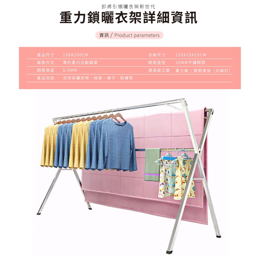 STYLE格調|獨家重力鎖不鏽鋼伸縮曬衣架(展開不夾手)【HH-001】 曬衣架 晾衣架 不鏽鋼曬衣架 【現貨優惠】雙桿2米(不鏽鋼+鍍鋅五金)|雙桿2米(全不鏽鋼)+滾輪|雙桿2.4米(全不鏽鋼)+滾輪|三桿2米(全不鏽鋼)+滾輪|三桿2.4米(全不鏽鋼)+滾輪Clotheslines & Drying RacksSTYLE格調居家美學